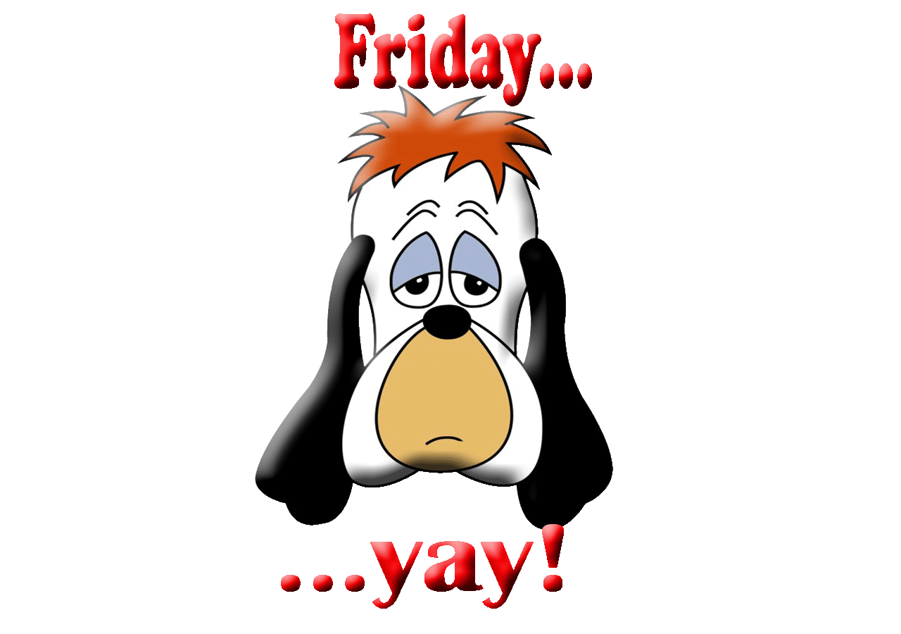 Description: A cartoon character with a sad look on his face and the words friday on it.