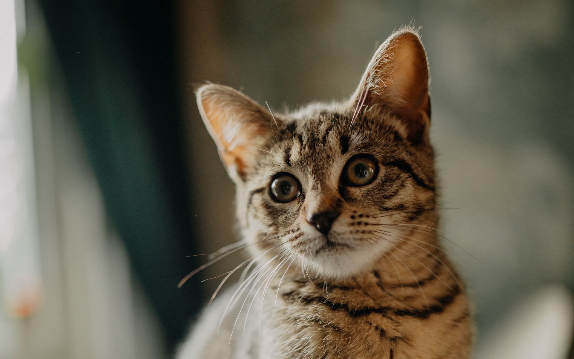 Description: A cat is looking at the camera with a sad look on its face and eyes.