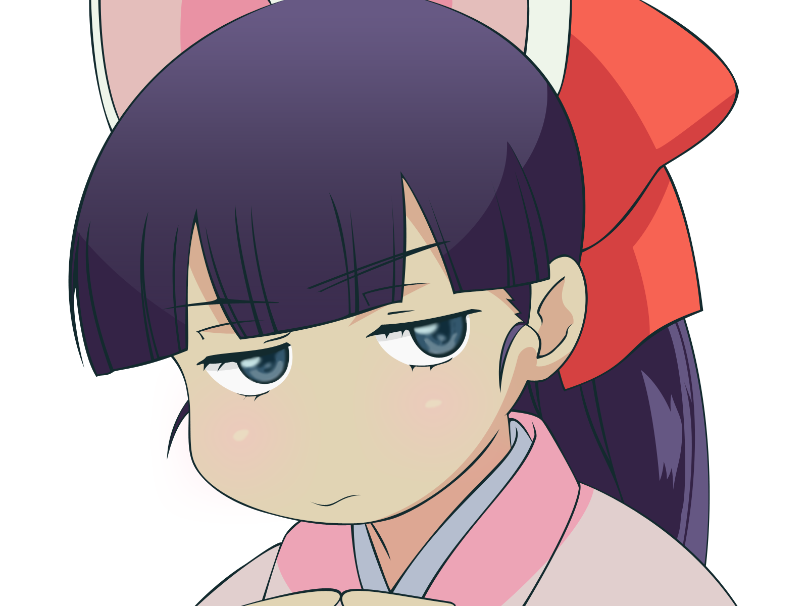 Description: A girl with a pink shirt and a red bow around her head looking at something with a sad look on her face.
