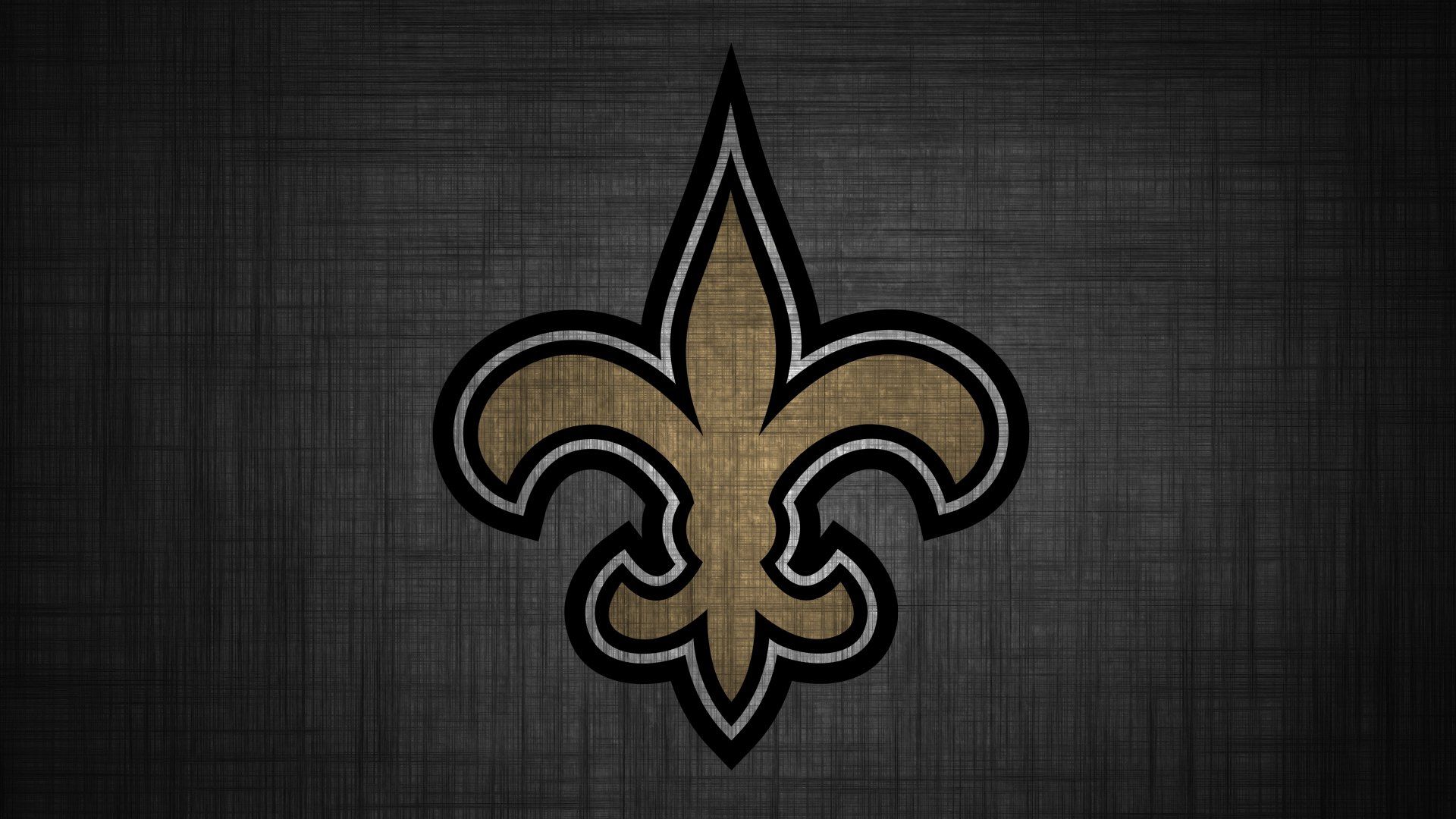 Description: A new orleans saints logo on a black background with a gold fleur de lis on it's side.