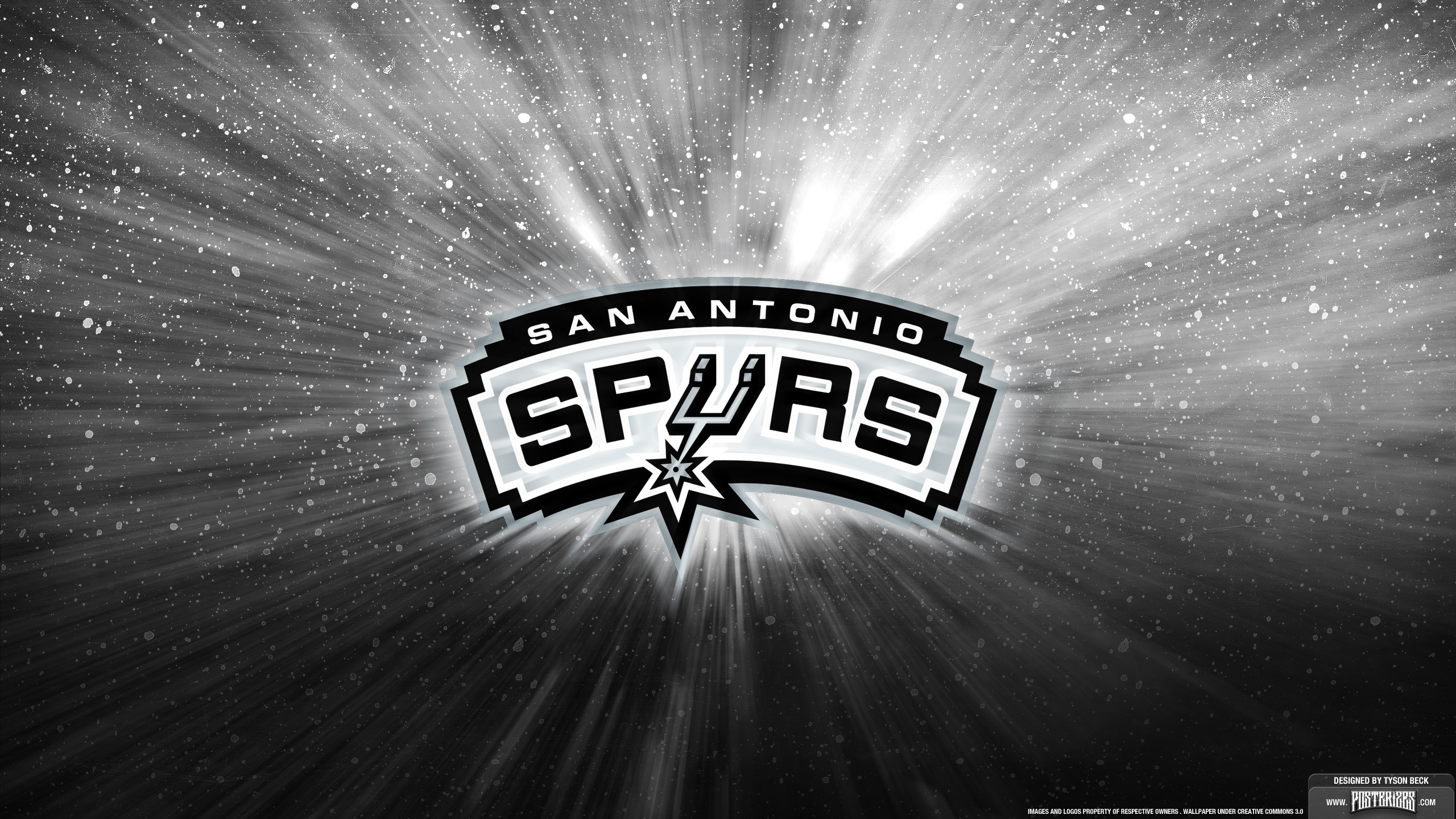 Description: The san antonio spurs logo on a black background with stars and snow flakes around it.