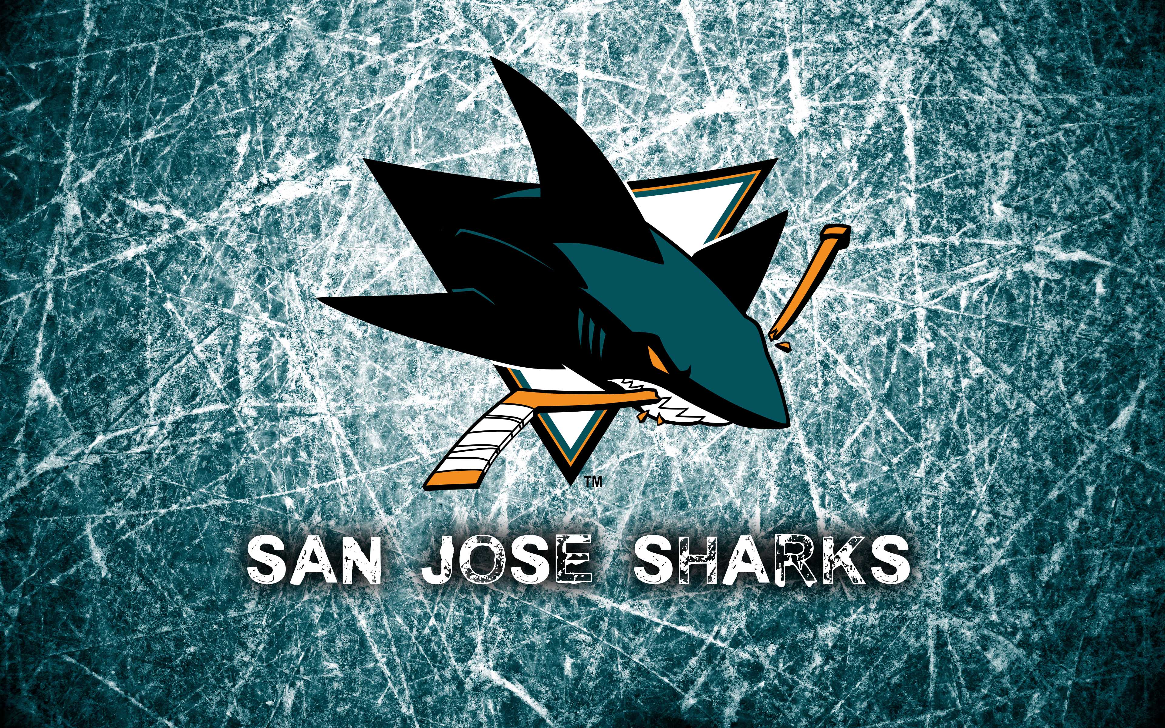 Description: A san jose sharks logo on a hockey background with a hockey stick in the center of the image and the word san jose sharks.