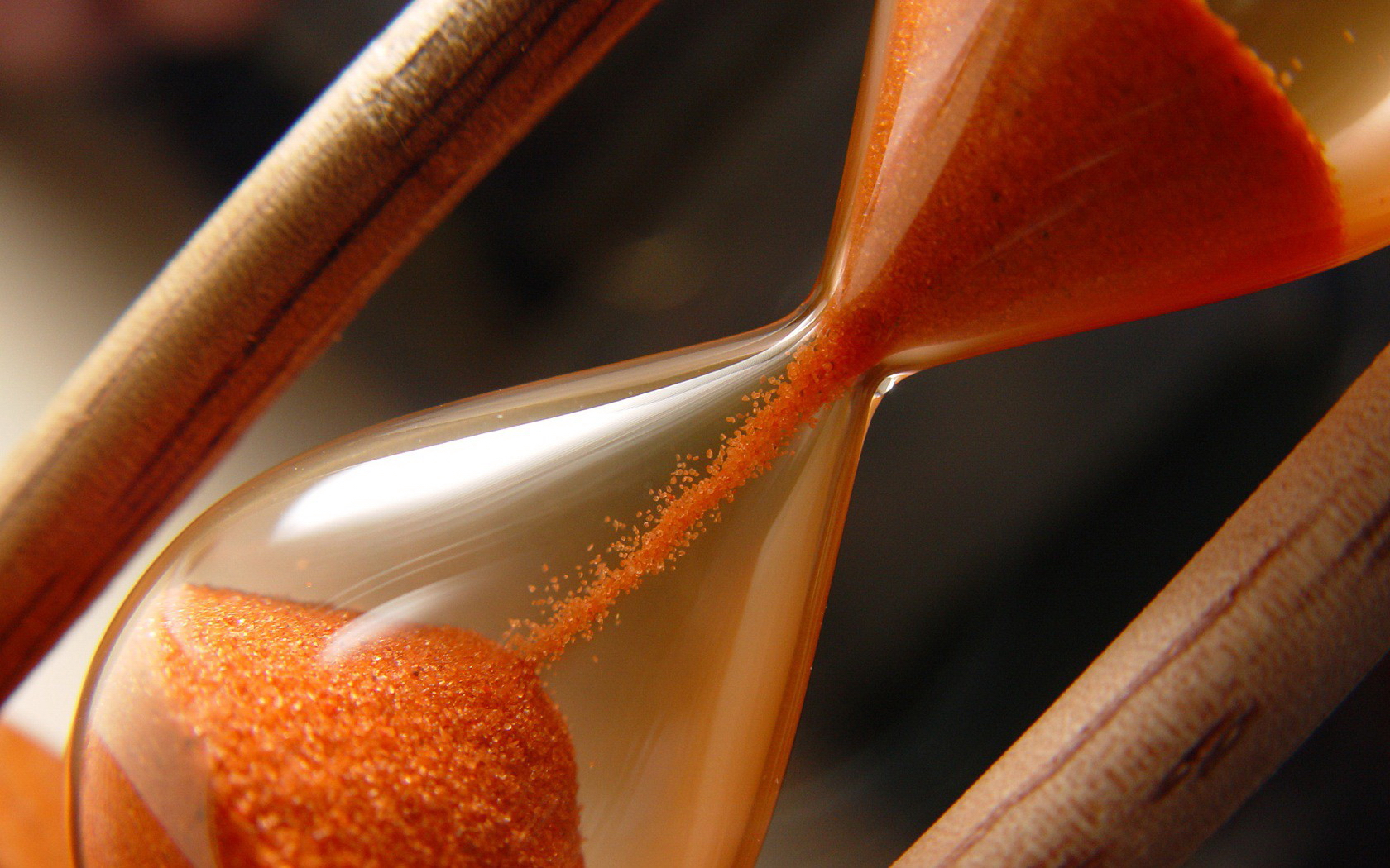 Description: A close up of a sandglass with a wooden handle and a sandglass in it's center.