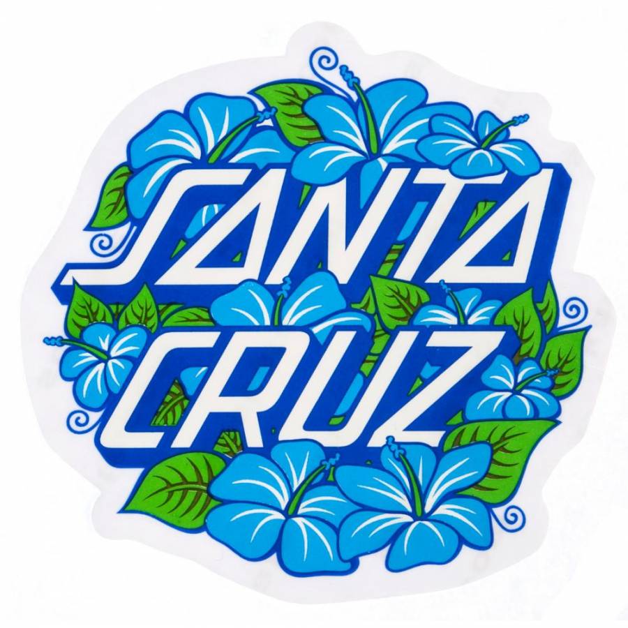 Description: A sticker with the words santa cruz in blue and green flowers on it's side.