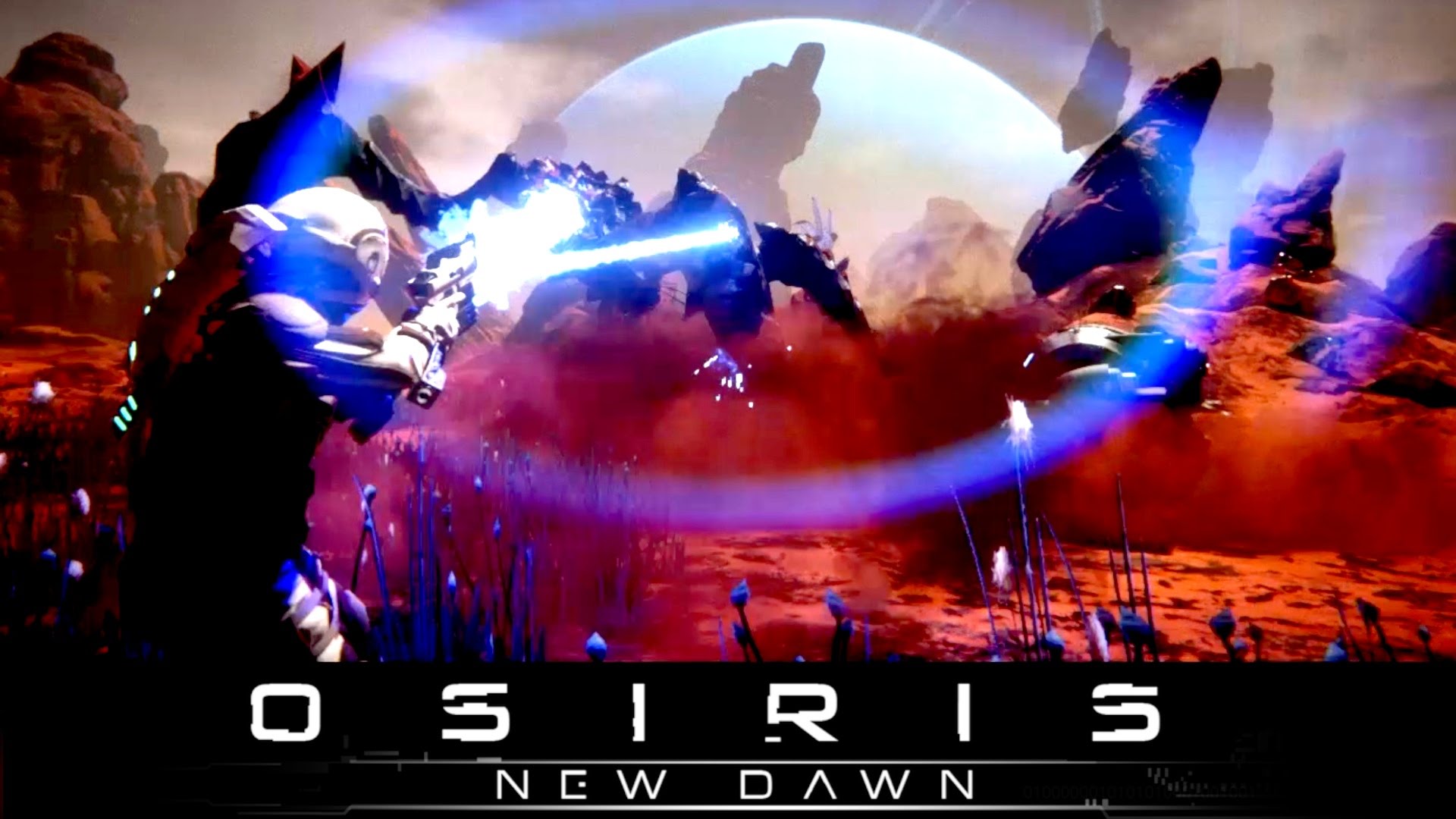 Description: A sci - fi character in a sci - fi movie with a giant alien like creature in the background.