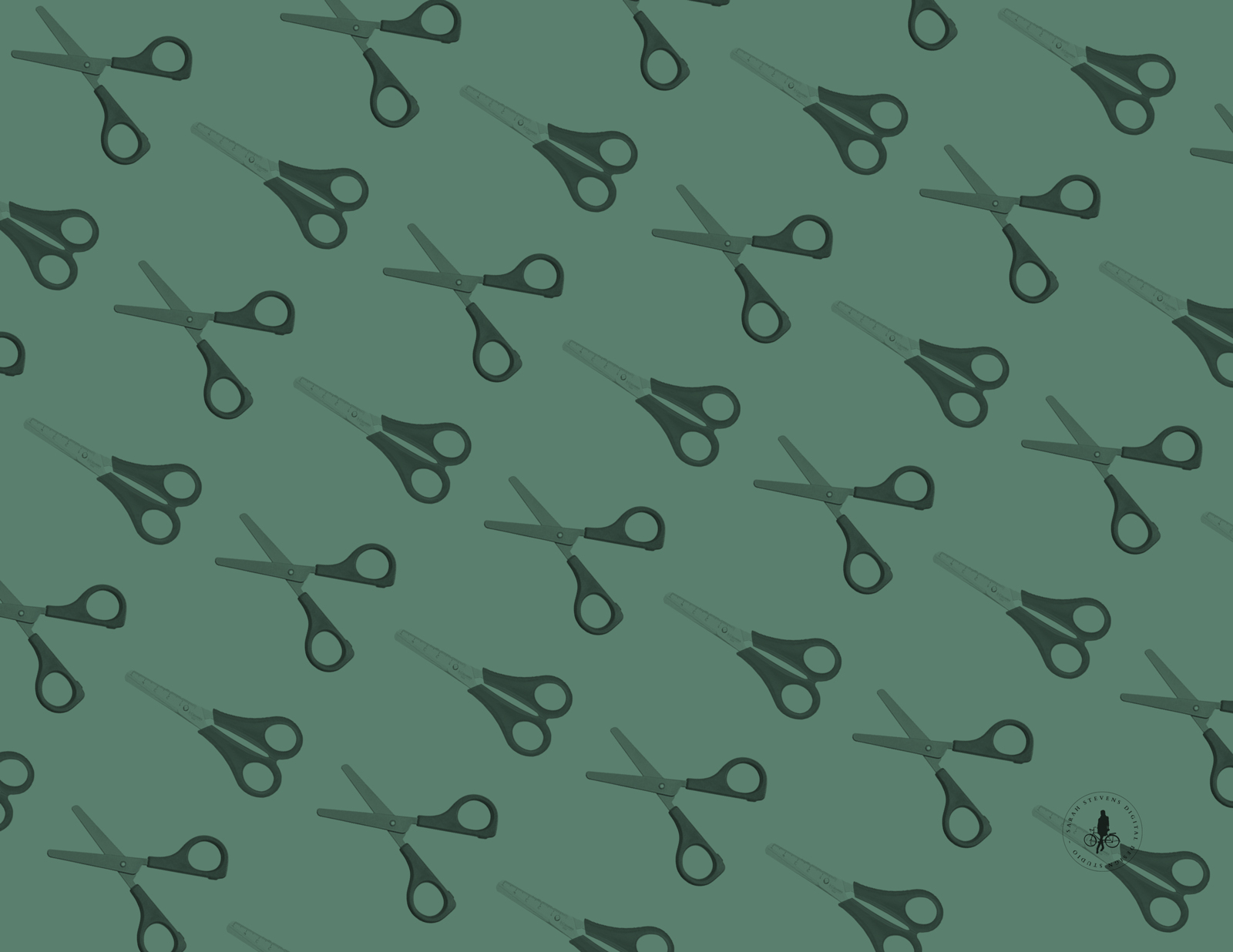 Description: A pattern of scissors on a green background with a black outline of scissors on a green background with a black outline of scissors.