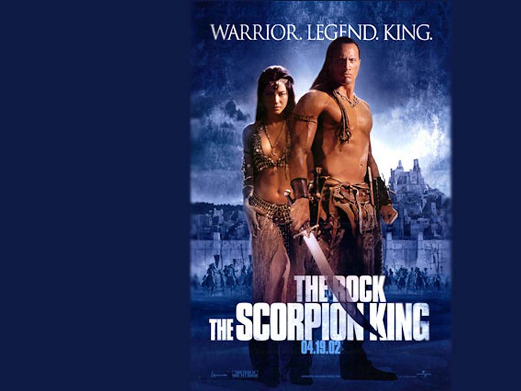 Description: A movie poster for the scorpion king with two men in costume and a sword in his hand.