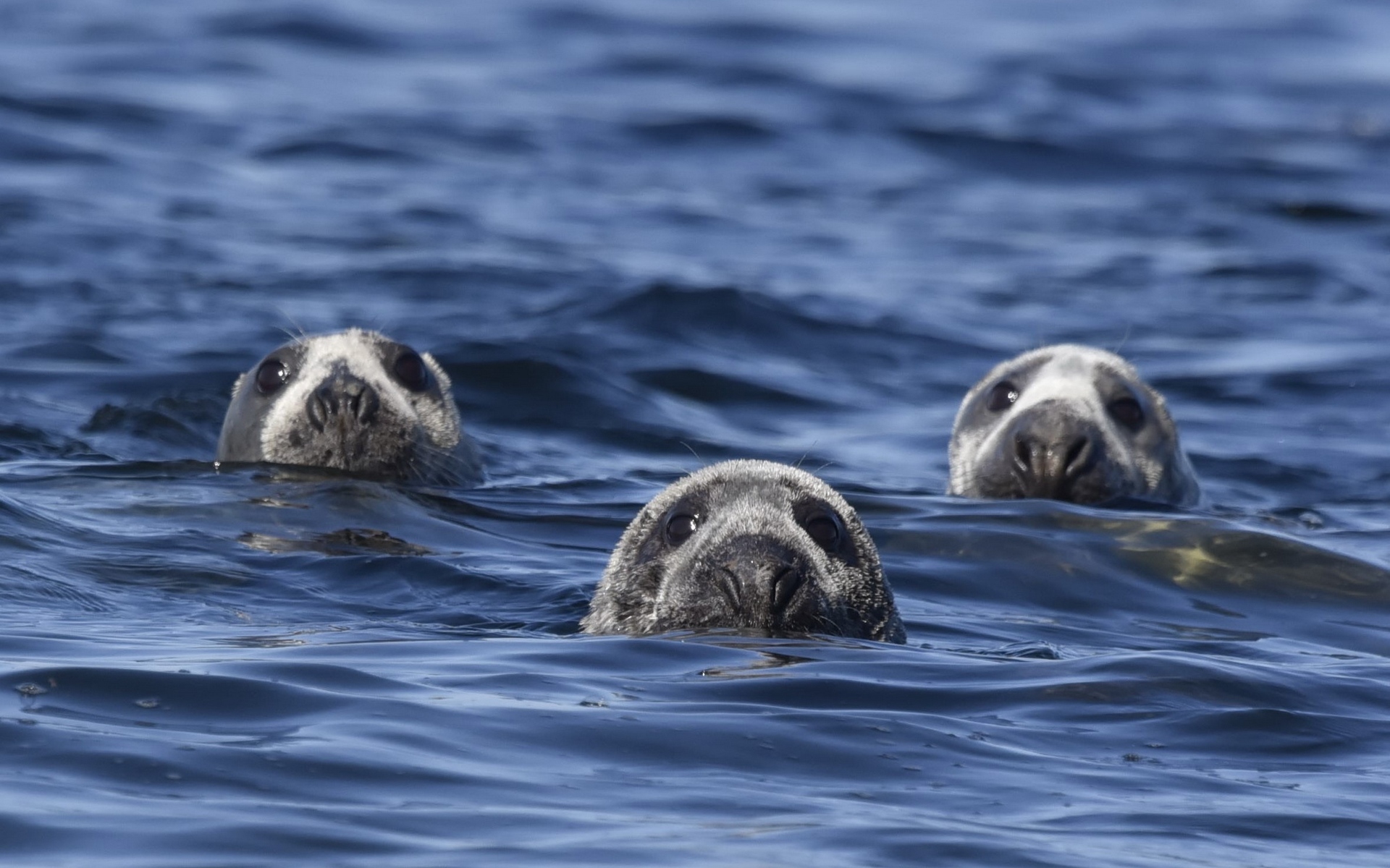 Description: Two sea lions swimming in the ocean together.