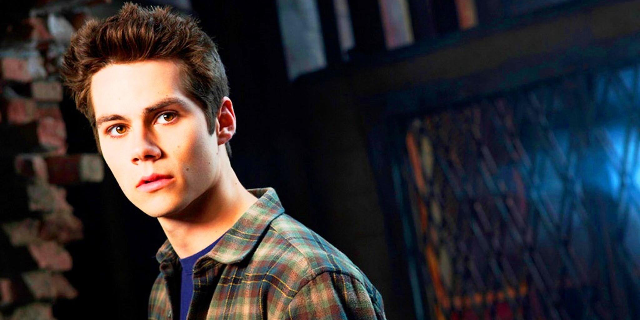 Description: A young man with a plaid shirt and a tie looking at the camera with a serious look on his face.
