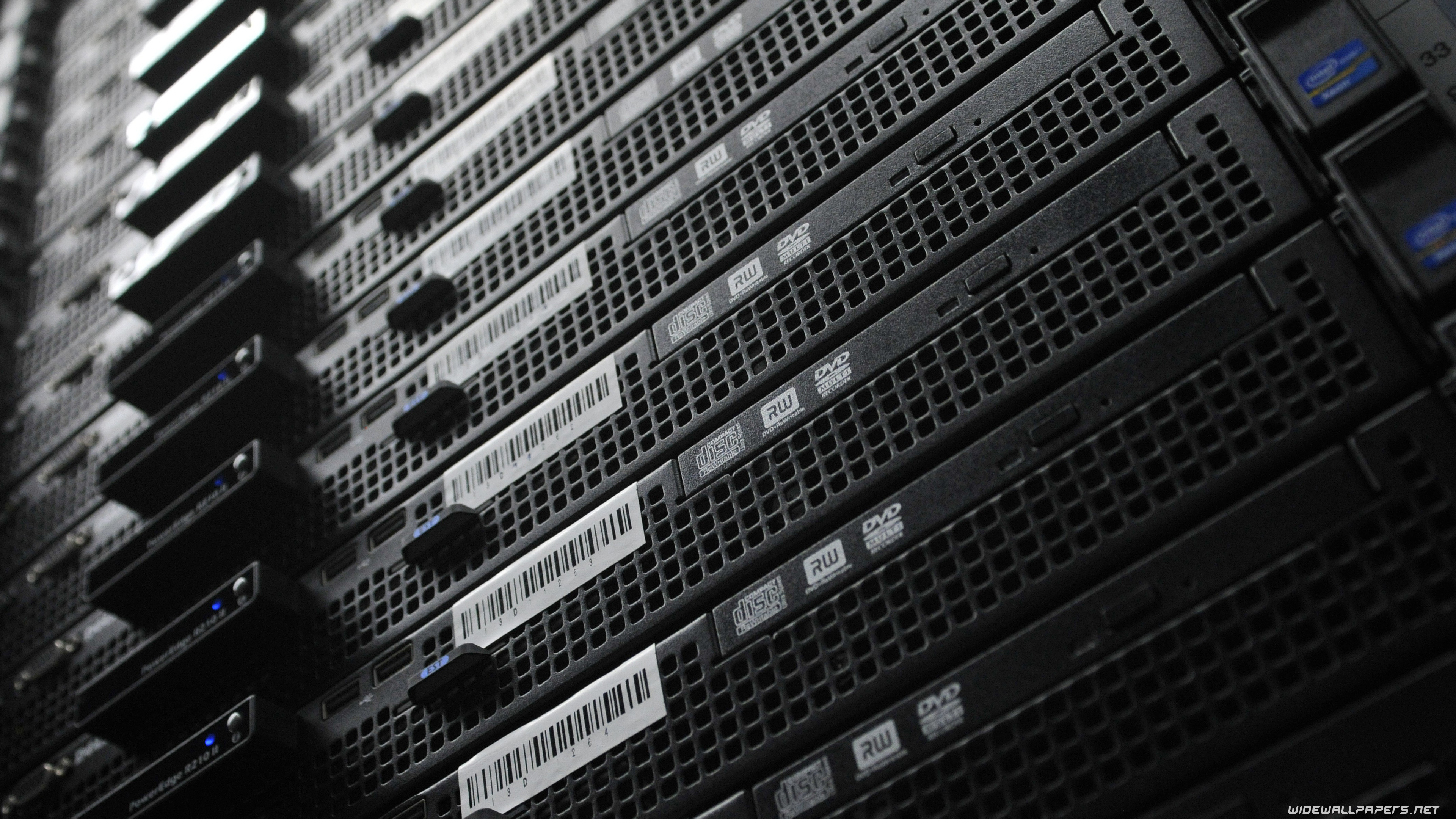Description: A large group of servers stacked on top of each other in a server room with a clock on the wall.