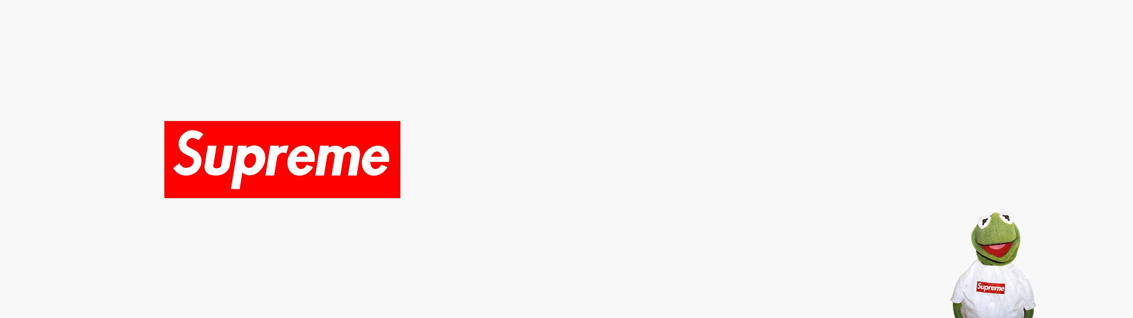 Description: A sesame character standing in front of a supreme sign with a sesame character in front of it and a supreme sign behind him.
