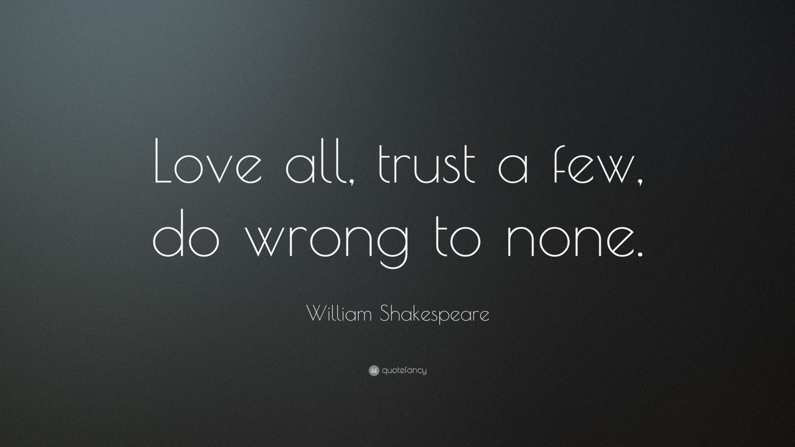 Description: A quote on love and trust from william shakespeare on a black background with a white outline of a man.