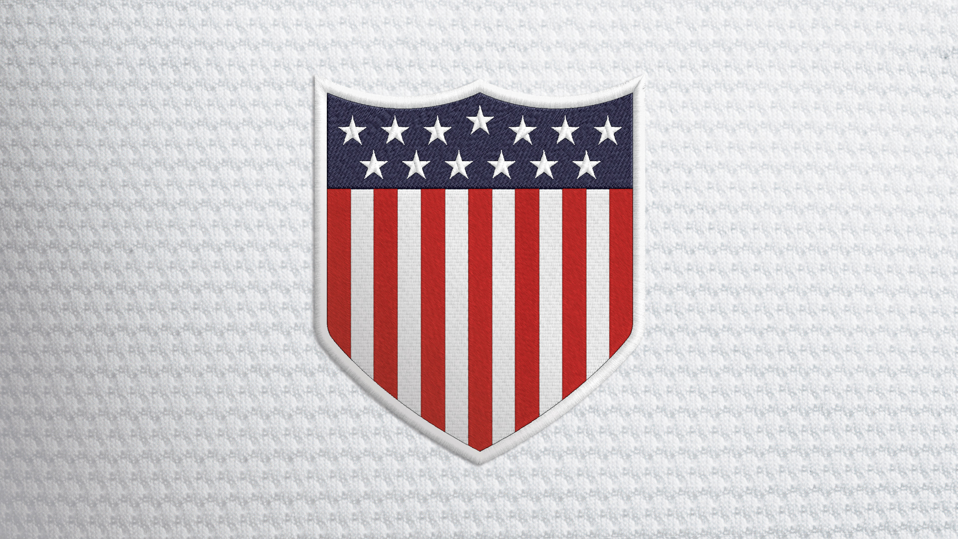 Description: A shield with a flag pattern on it is shown in the middle of a white background with a red.