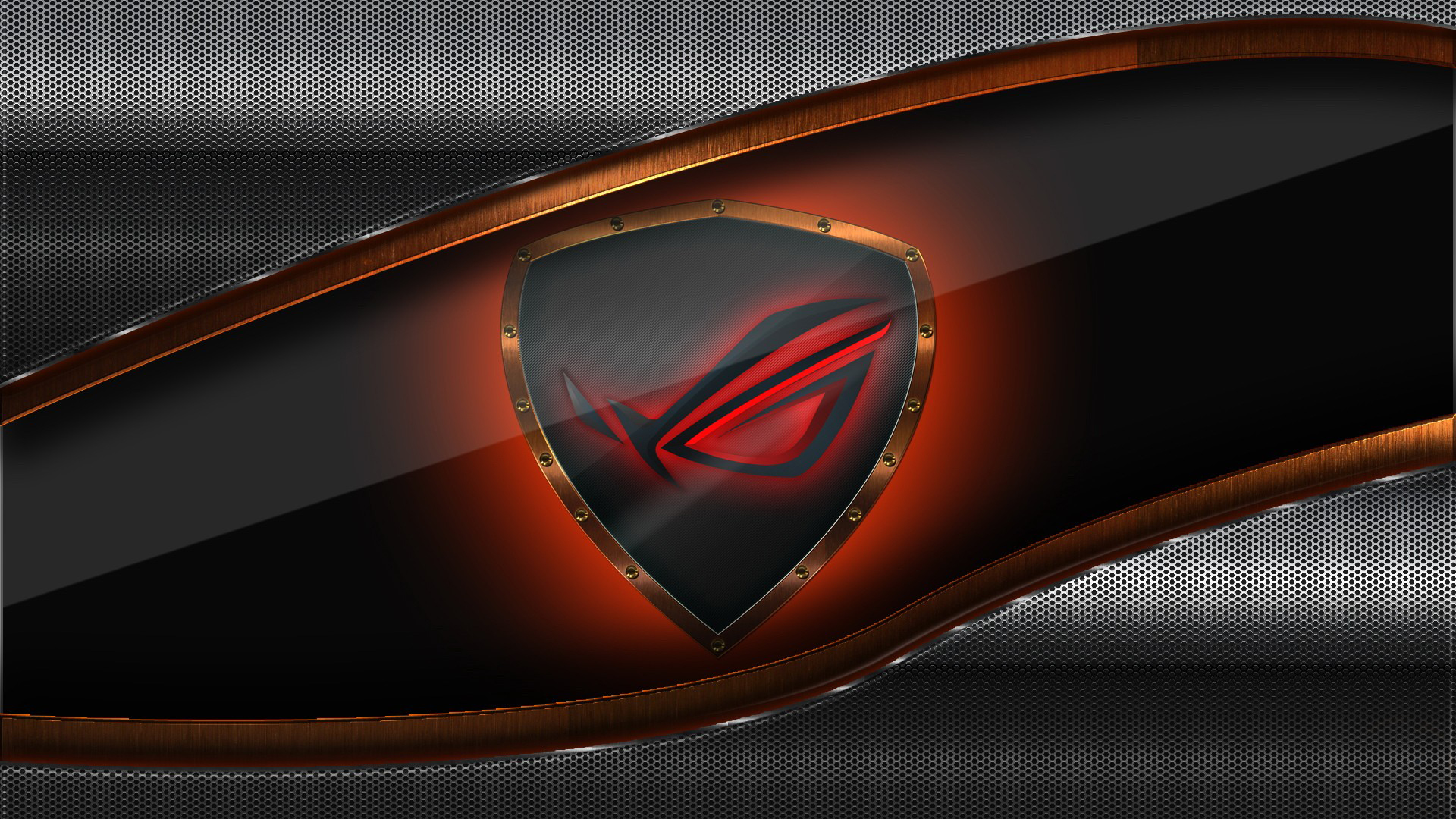 Description: A shiny red and black shield with a red logo on it's side and a black background with a gold border.