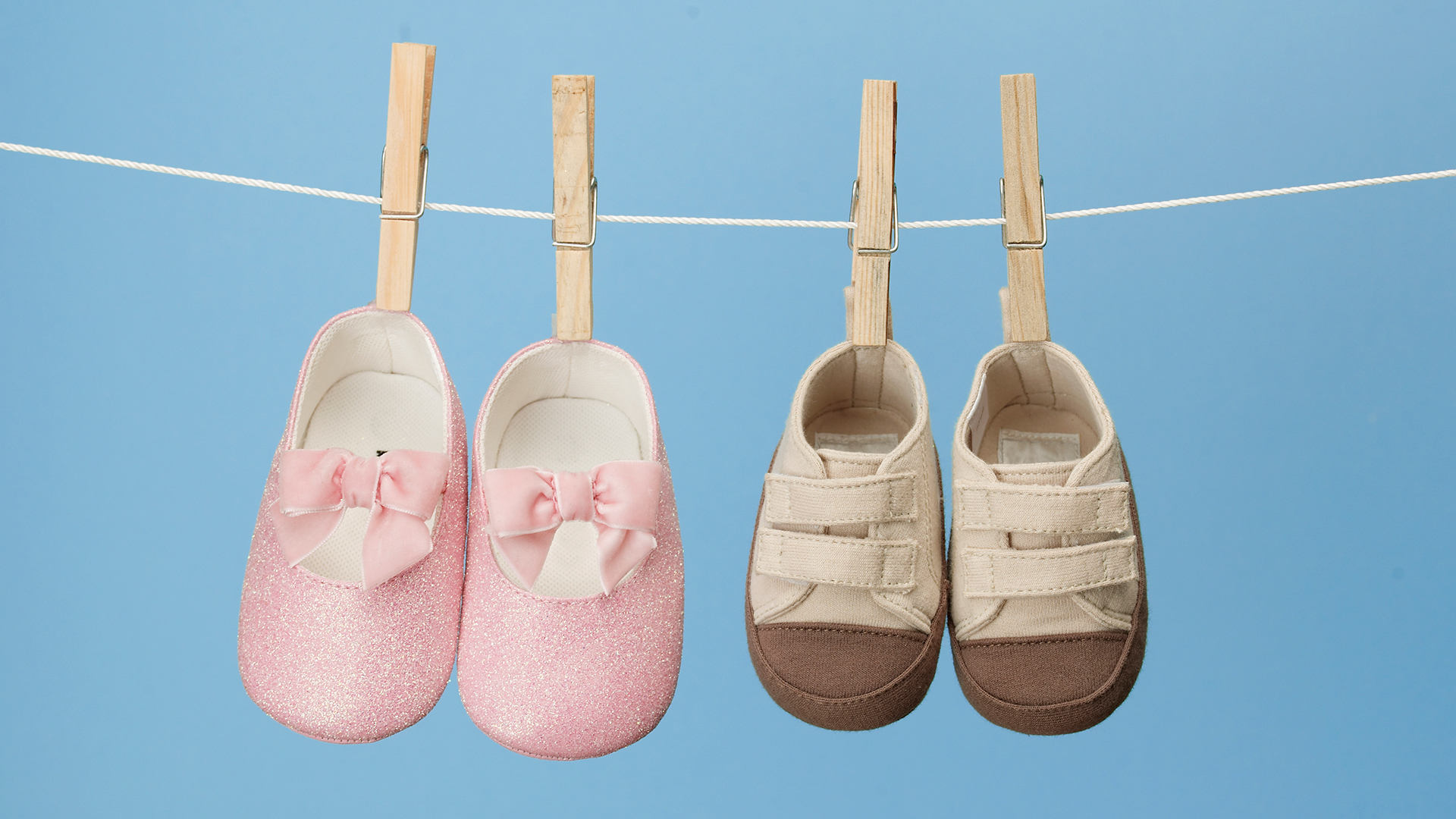 Description: A pair of shoes hanging on a clothes line with clothes pins attached to them and a pair of shoes hanging on a clothes line with clothes pins attached to a clothes line.