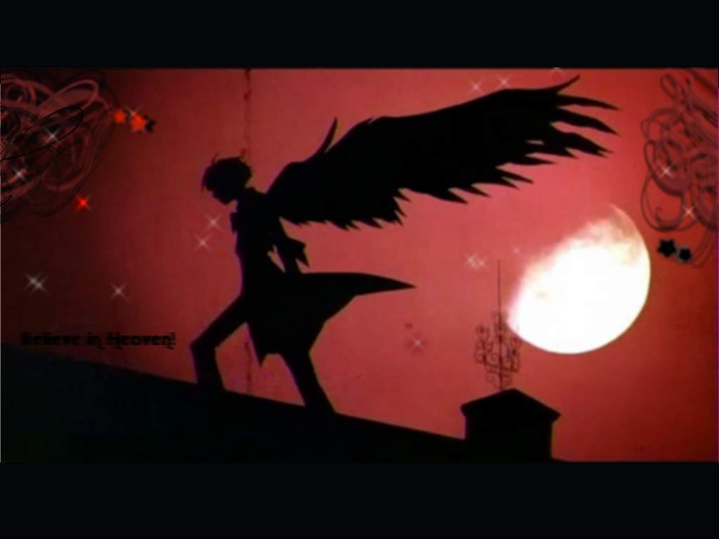 Description: A silhouette of a person with a large bird on their shoulder and a full moon in the background with stars.