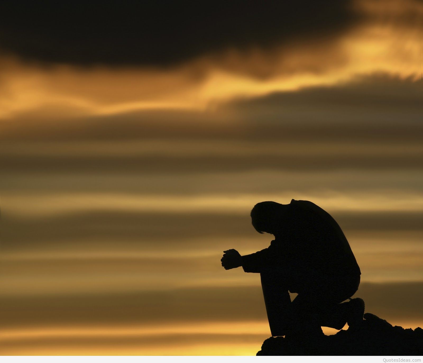 Description: A silhouette of a man sitting on a rock with a cross in his hands.