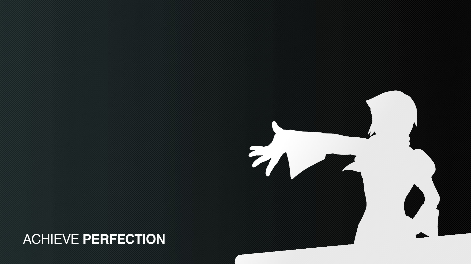 Description: A silhouette of a person holding a knife in their hand with the words achieve perfection on it in white.