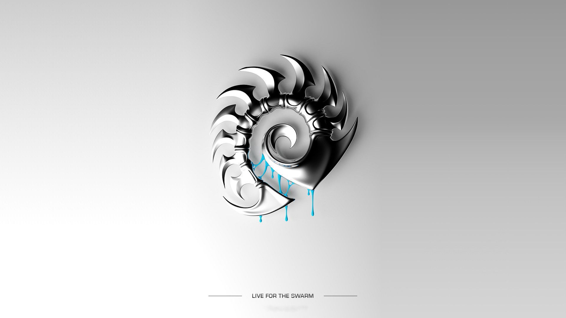 Description: A silver abstract design with a blue drop of water coming out of it's centerpieces and a white background.