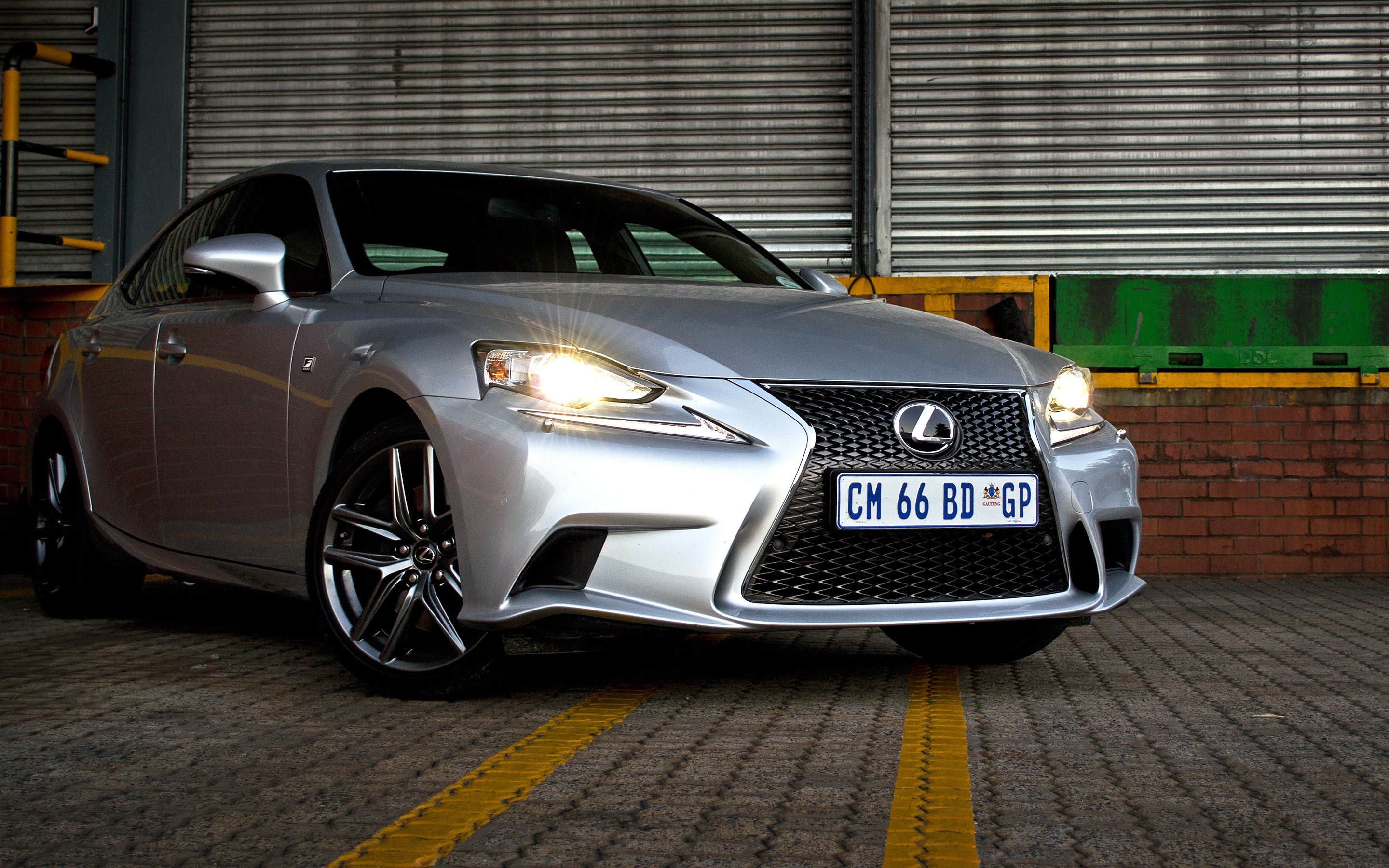 Description: A silver car parked in front of a building with shutters on the side of it and a brick wall behind it.