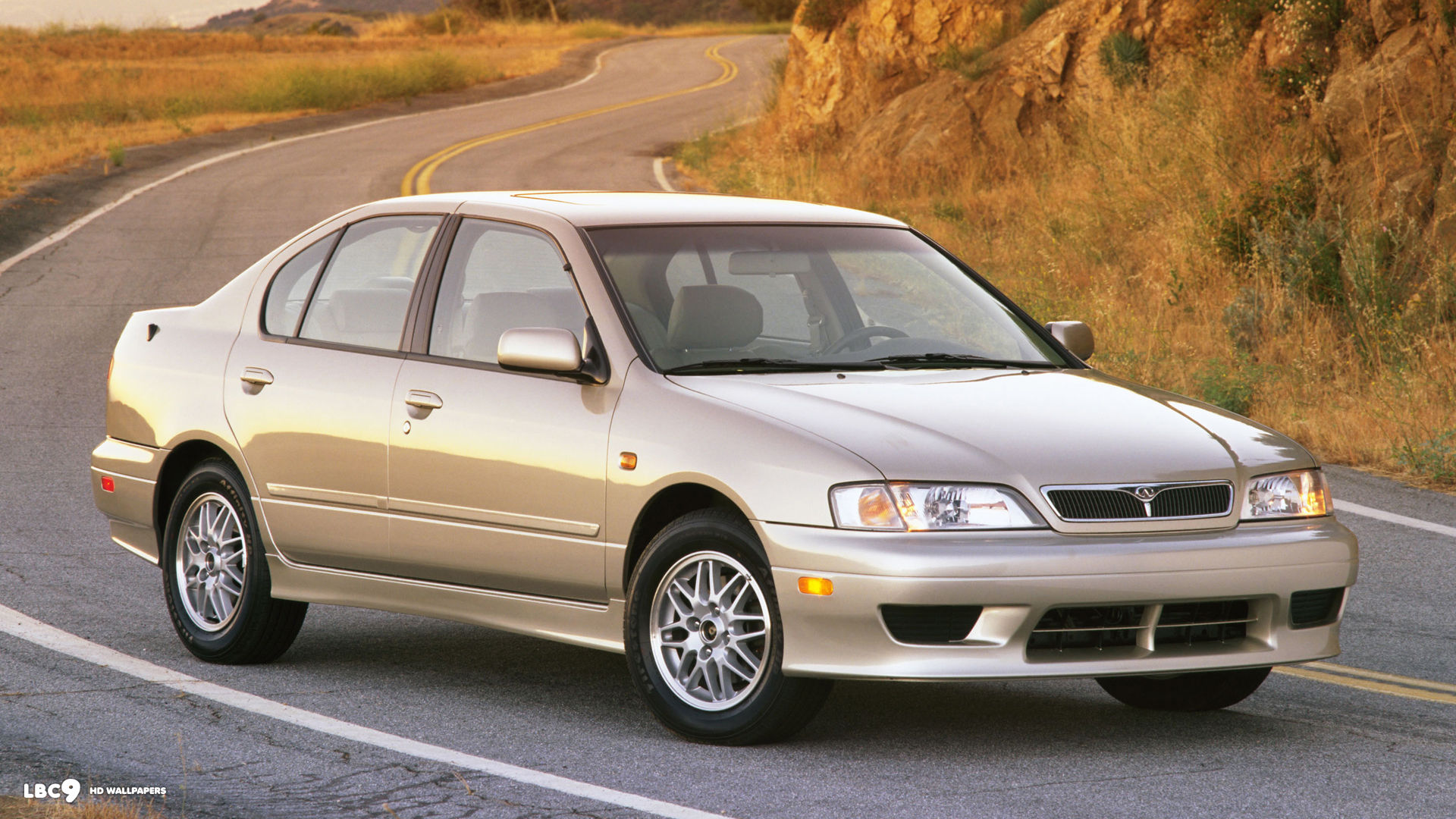Description: A silver car is driving down a road near a grassy hill and a hill side area with a yellow grass area.
