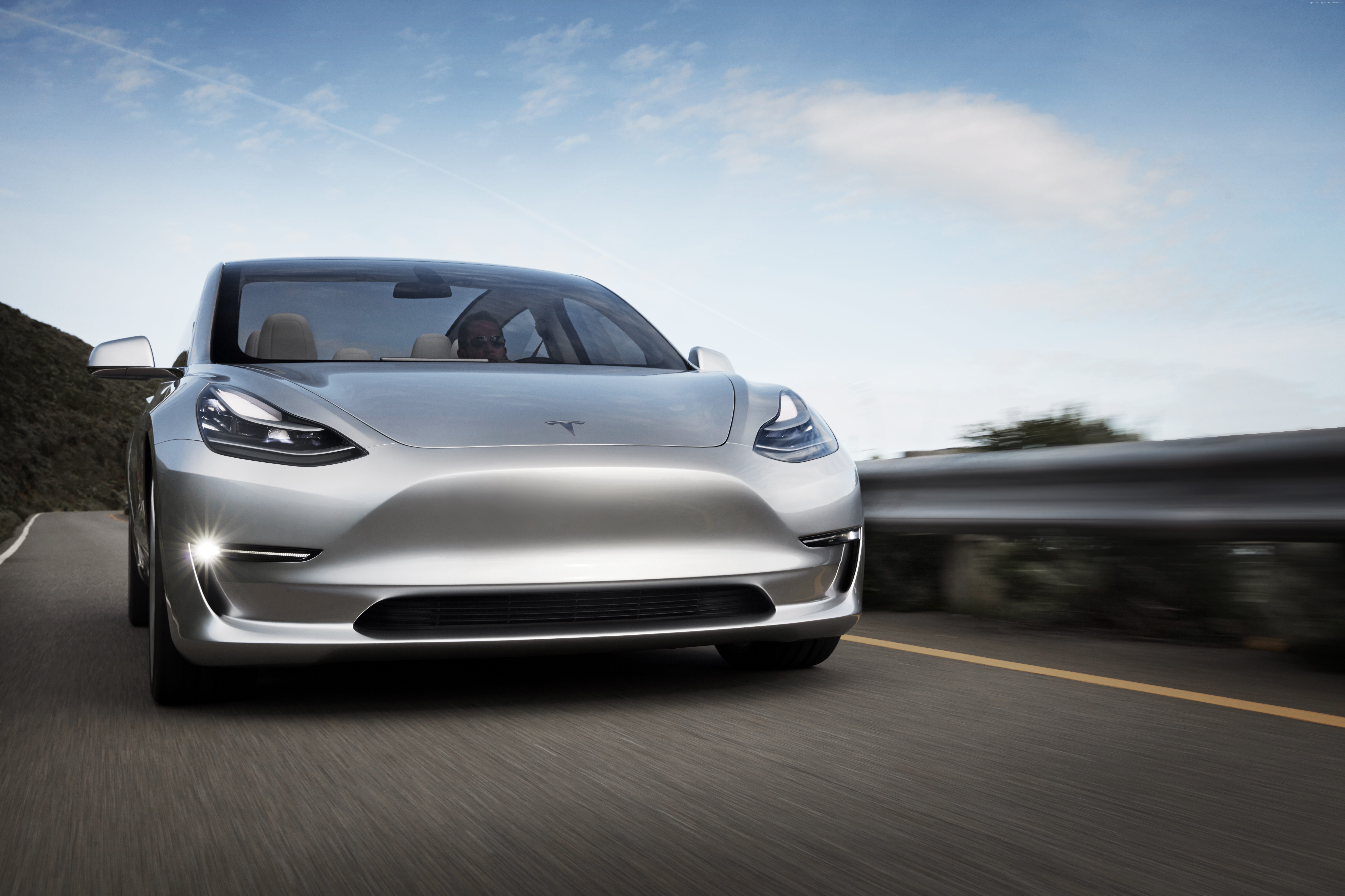 Description: A silver car driving down a road next to a mountain side under a blue sky with clouds in the background.