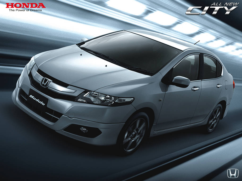 Description: A silver car driving down a highway next to a tunnel with lights on it's sides and a black and white background.