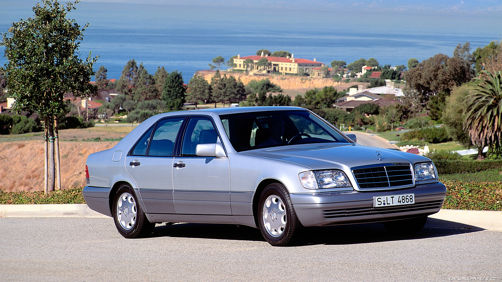 Description: A silver car parked on the side of a road near a hill and ocean in the background with a house in the distance.