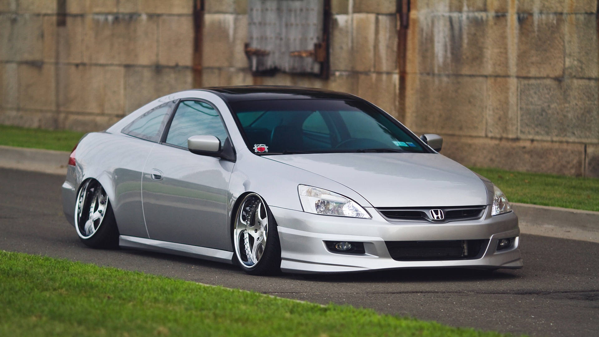 Description: A silver car driving down a street next to a wall of grass and a fenced in area with a fence.
