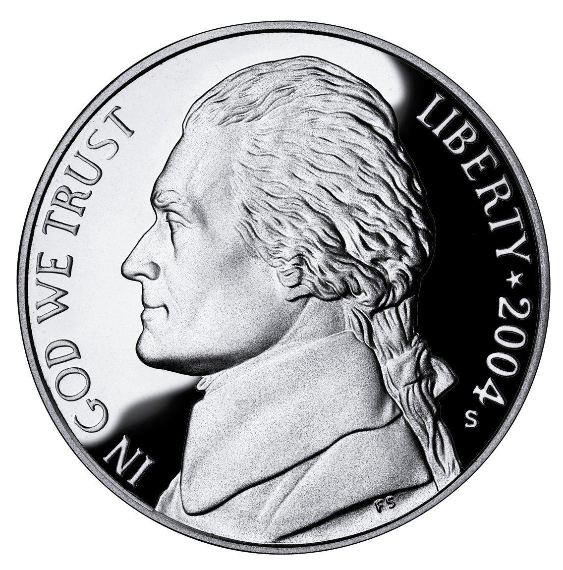 Description: A silver coin with a portrait of a man in profile and the words liberty on it.