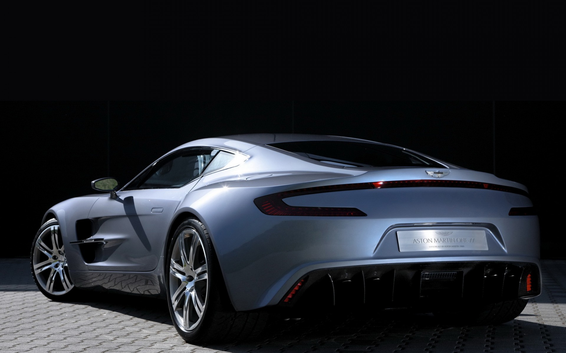 Description: A silver sports car parked in a dark room with a black background and a black light behind it and a black wall.