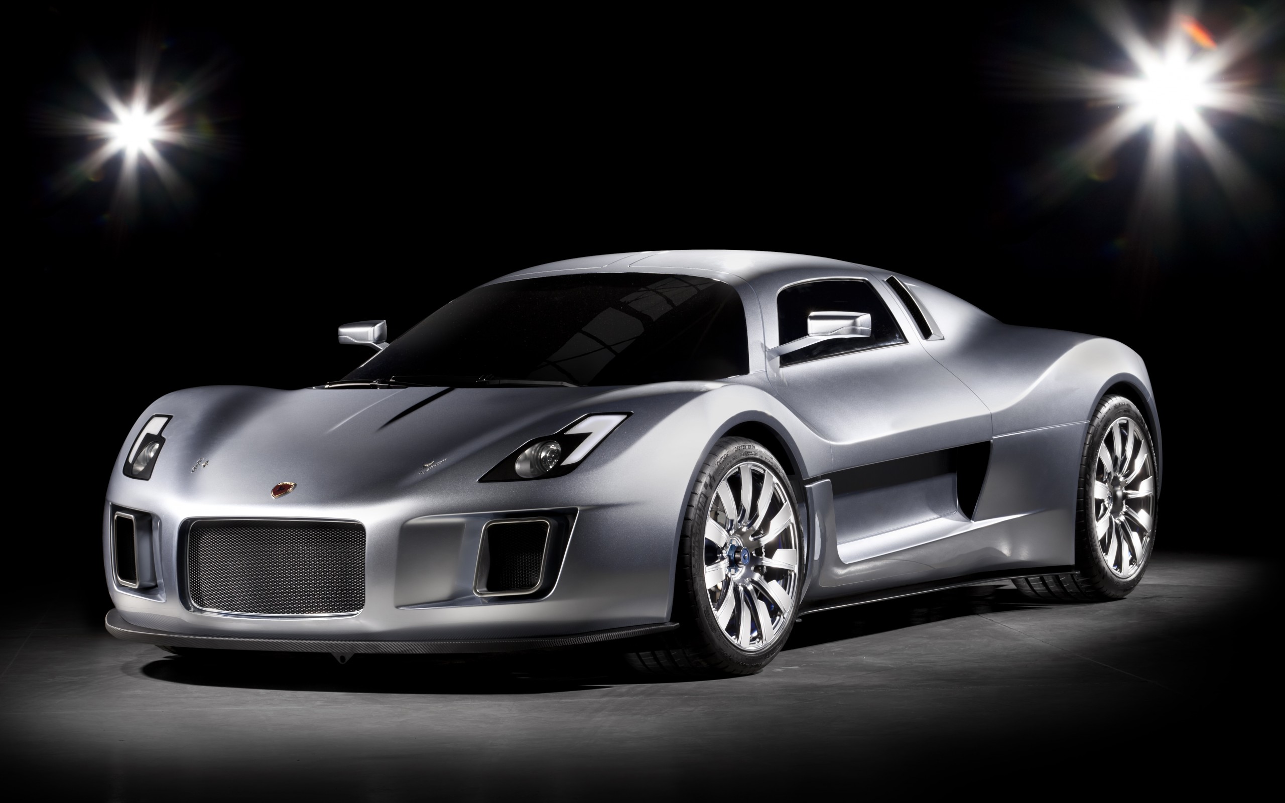 Description: A silver sports car with two lights on the side of it and a black background with a black background.