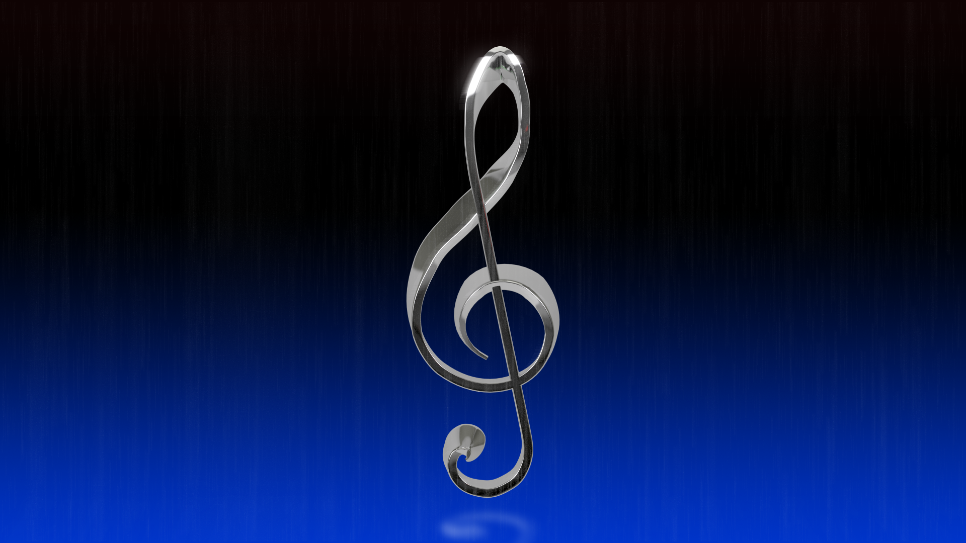 Description: A silver treble on a blue background with a black background and a white background with a black border.