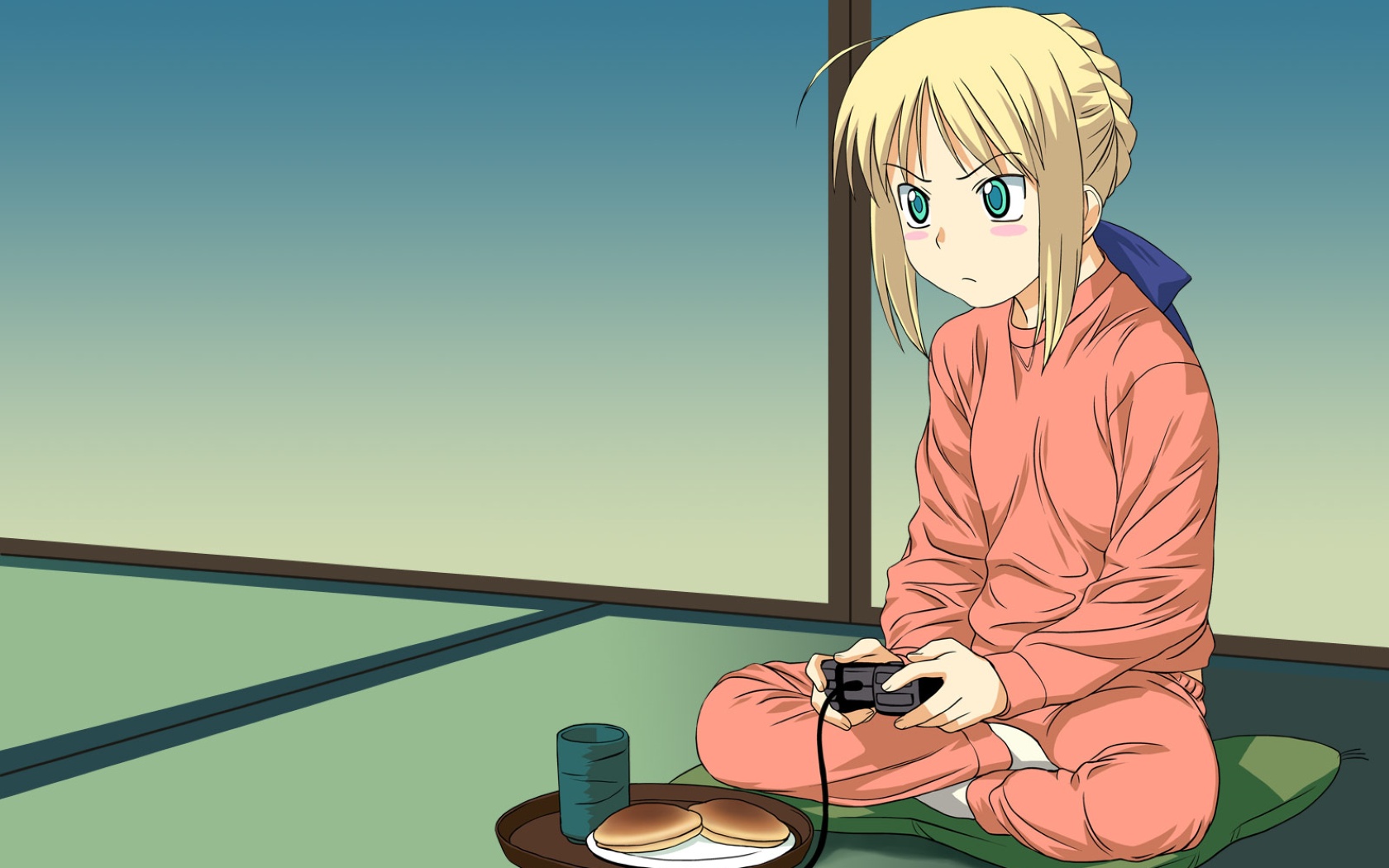 Description: A person sitting on a floor with a remote control in their hand and a plate of food in front of them.