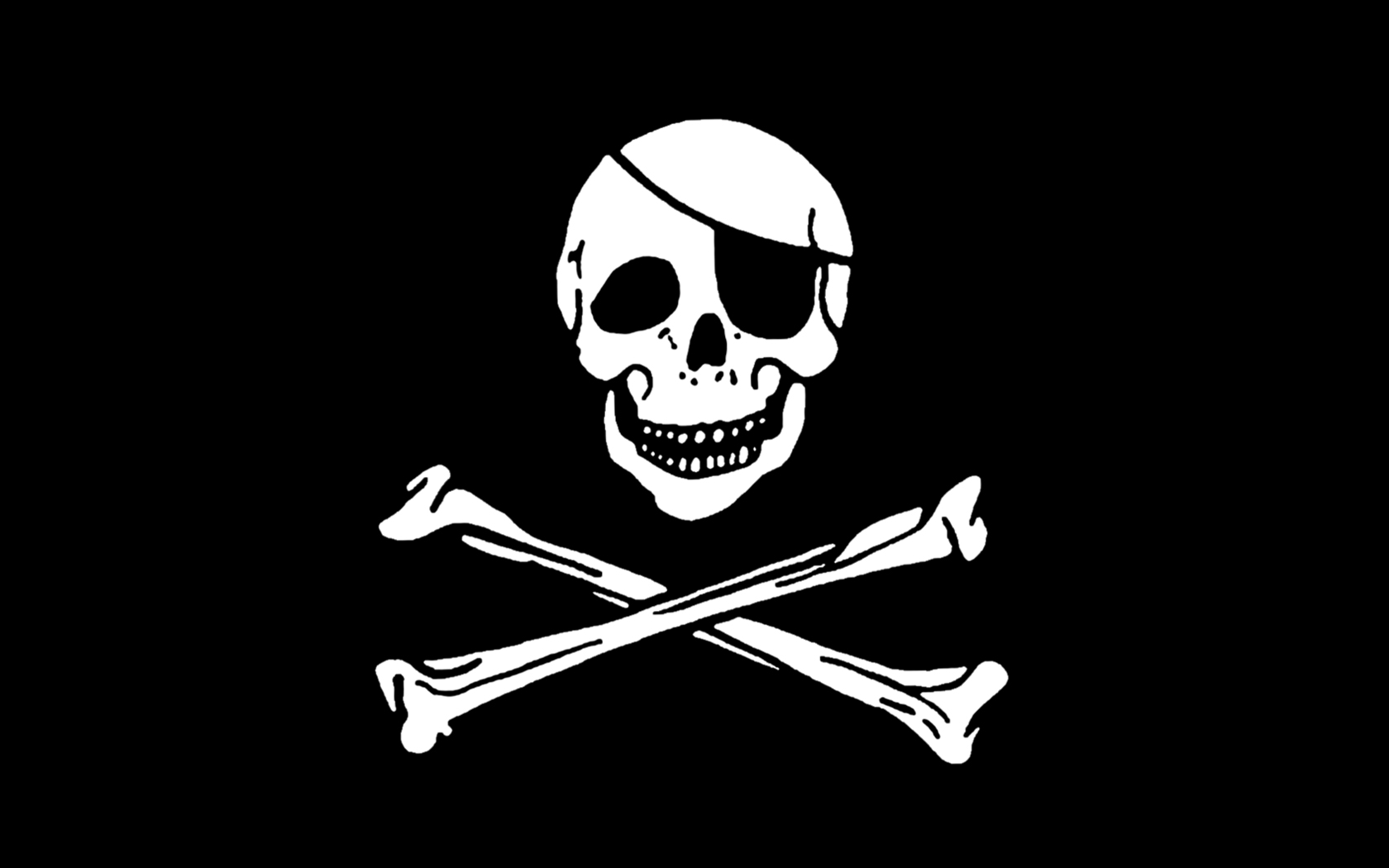 Description: A skull and crossbones on a black background with a white outline of a skull and crossbones.