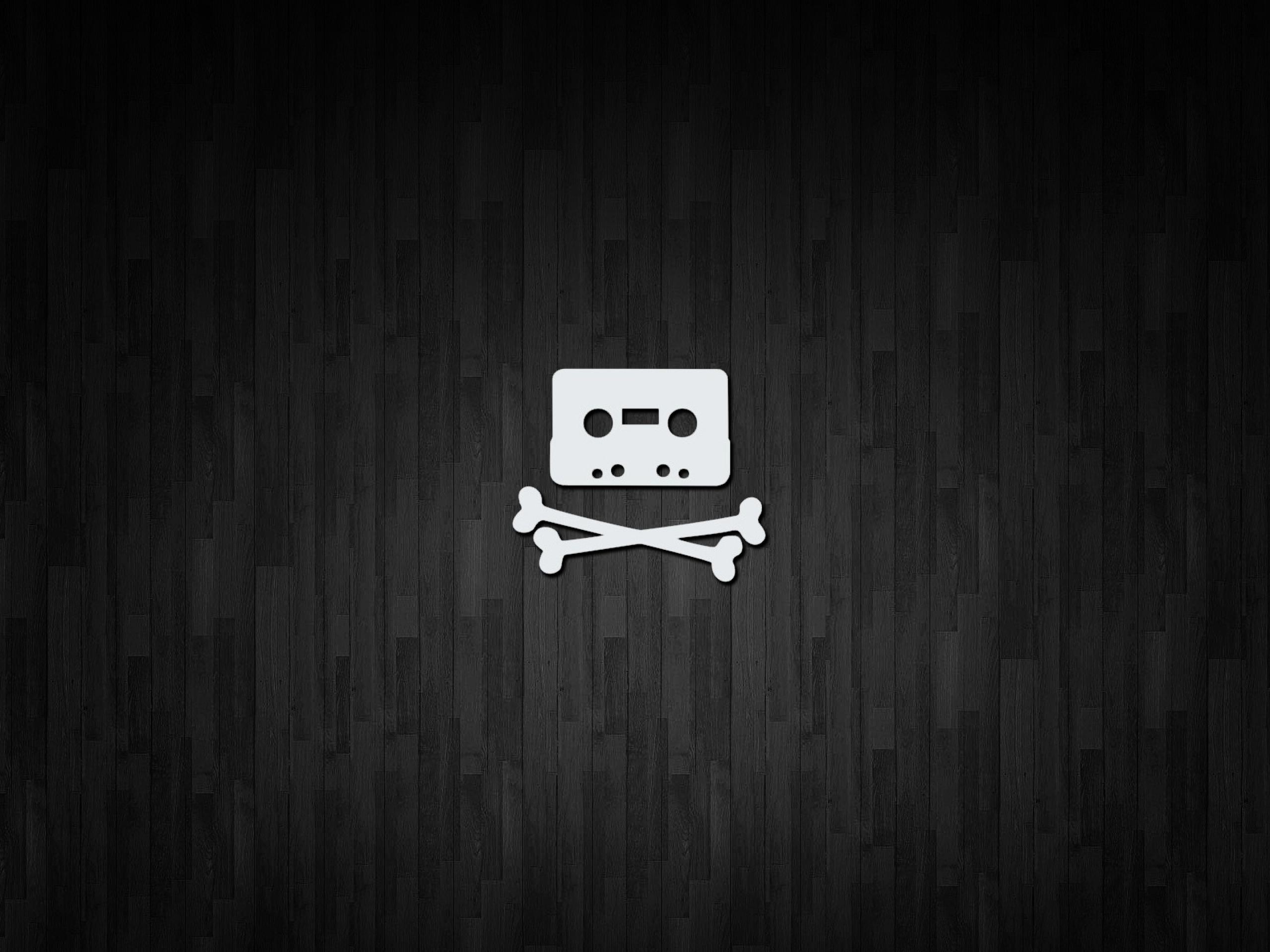 Description: A skull and crossbones on a black wood background with a white skull and crossbones on the side.