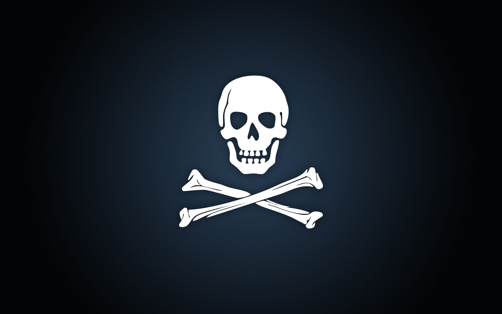 Description: A skull and crossbones symbol on a dark background with a white outline on the bottom of the skull.