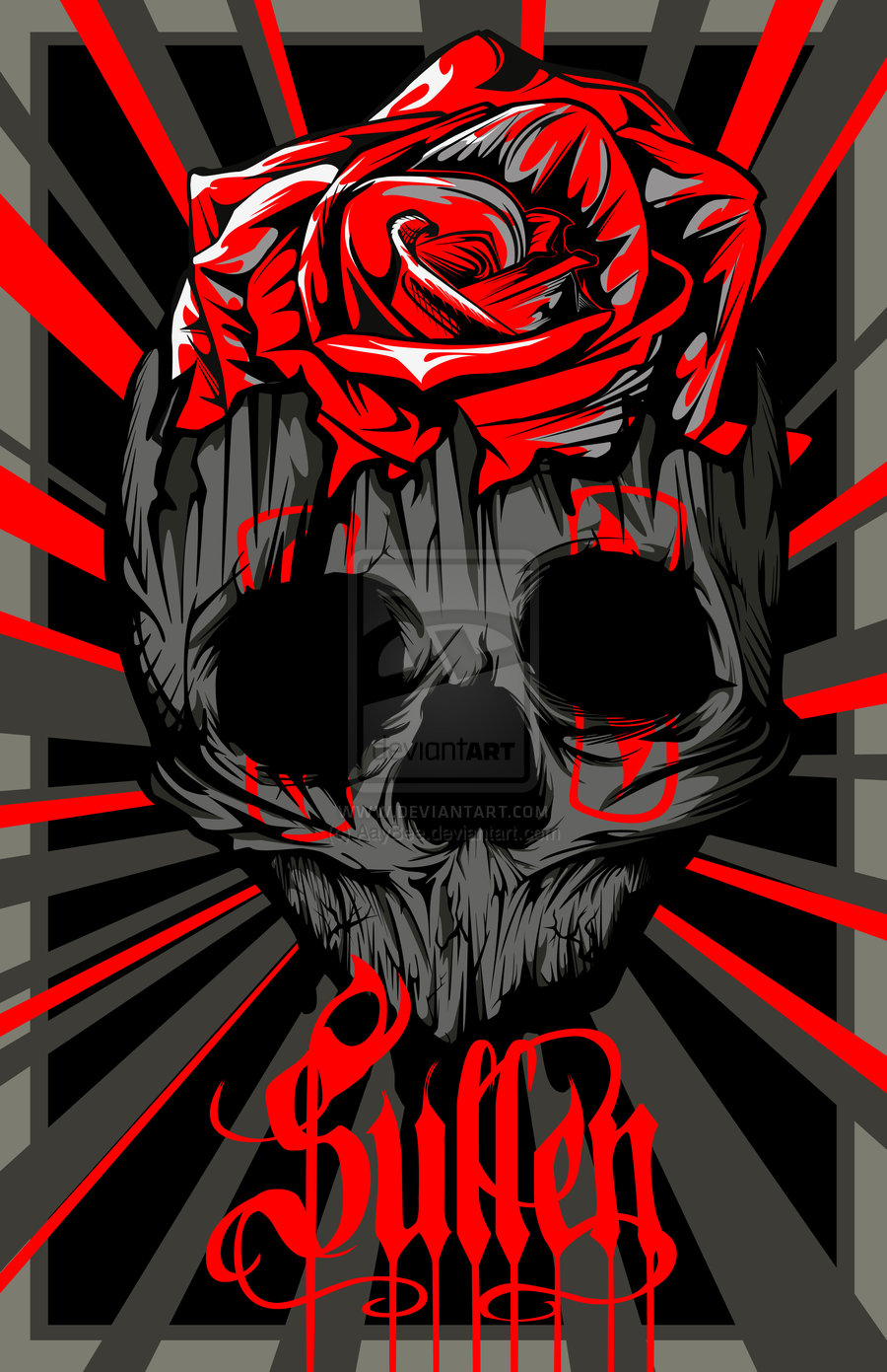 Description: A skull with a rose on it's head and the word sugar on it's forehead.