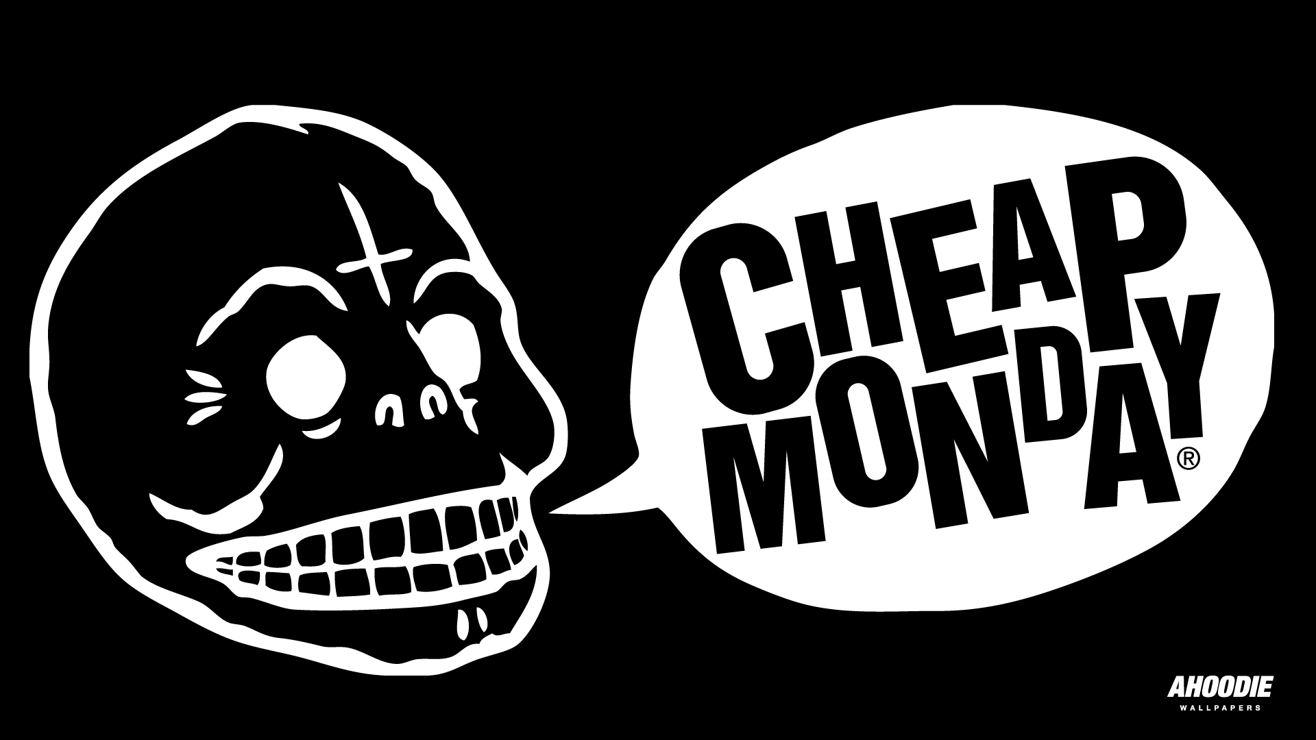 Description: A skull with a speech bubble saying cheap monday on it's face and a speech bubble with the word cheap monday.
