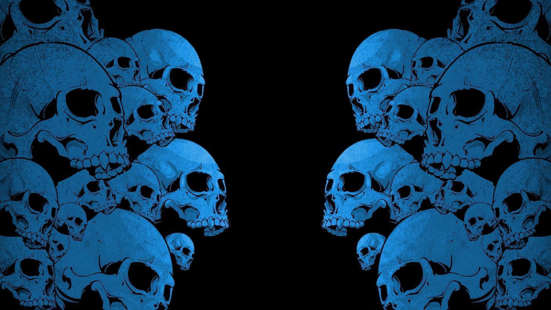 Description: A bunch of skulls are shown in blue on a black background with a black background and a blue background.