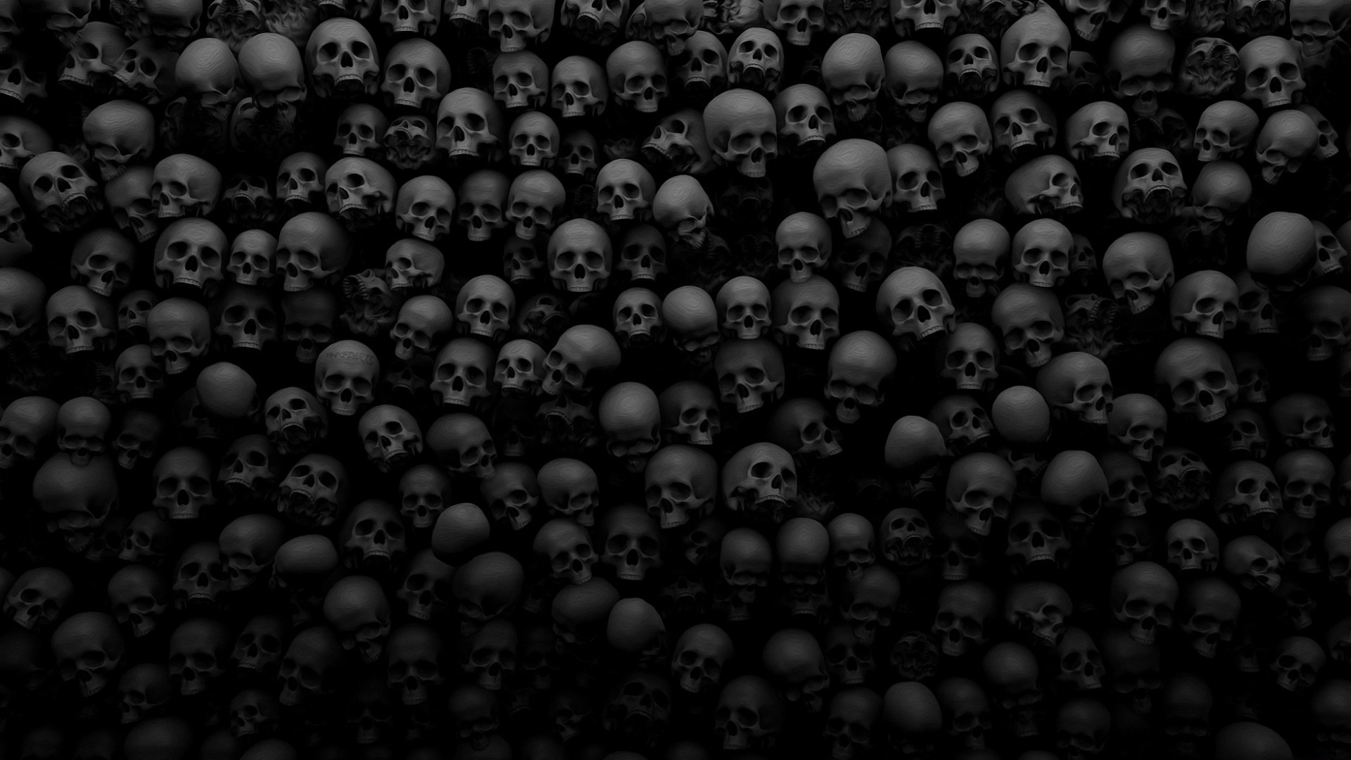 Description: A bunch of skulls are stacked together in a black background with a black border around them and the skulls are all black.