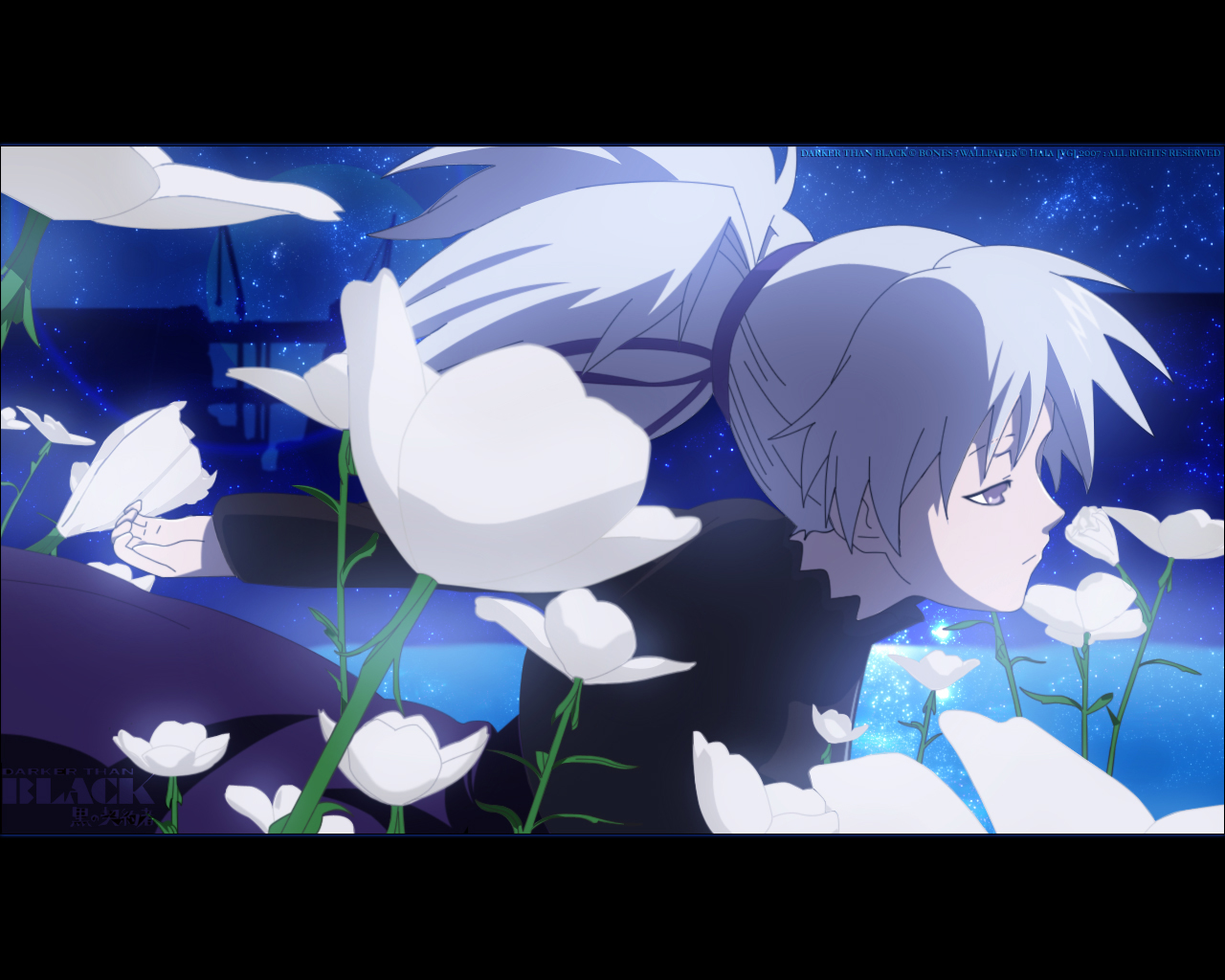 Description: A person standing in front of flowers with a sky background and stars in the background.