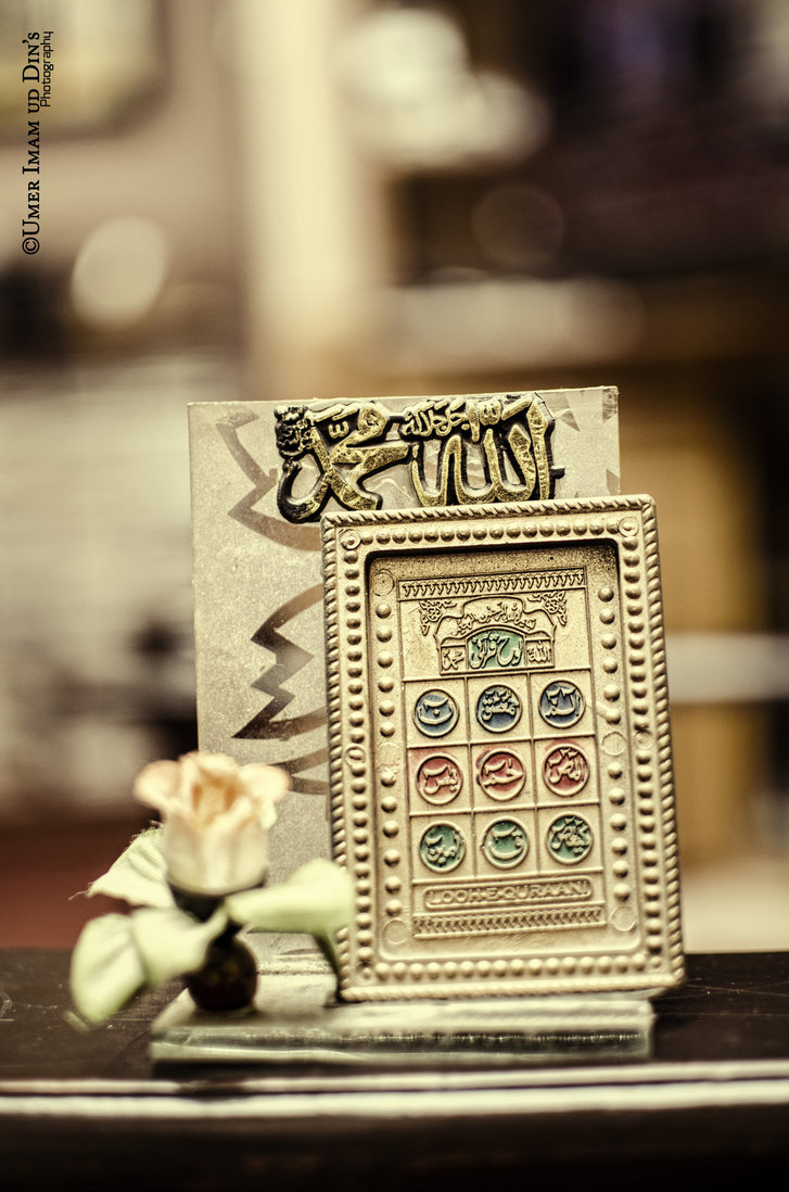 Description: A small picture frame with a flower on a table next to it and a picture frame with a picture of a horse.