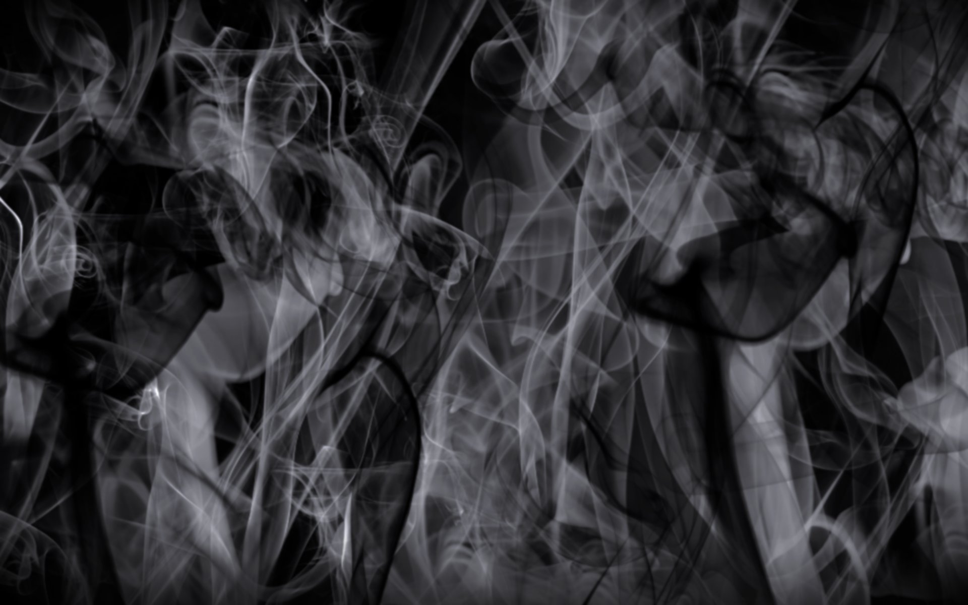 Description: A black and white photo of smoke and smoke sticks in the air with a black background and a white smoke line.