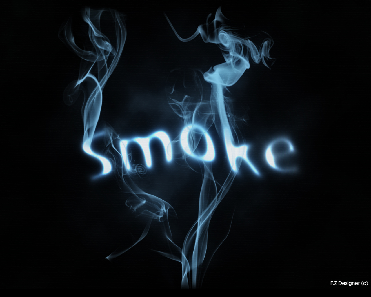 Description: Smoke is shown in the shape of the word smoke on a black background with a blue smoke trail in the center.