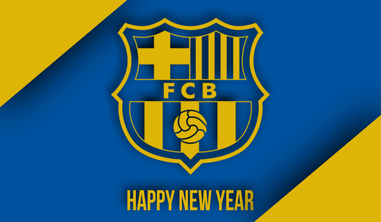Description: A soccer ball is in the middle of a blue and yellow background with a soccer emblem on it's side.