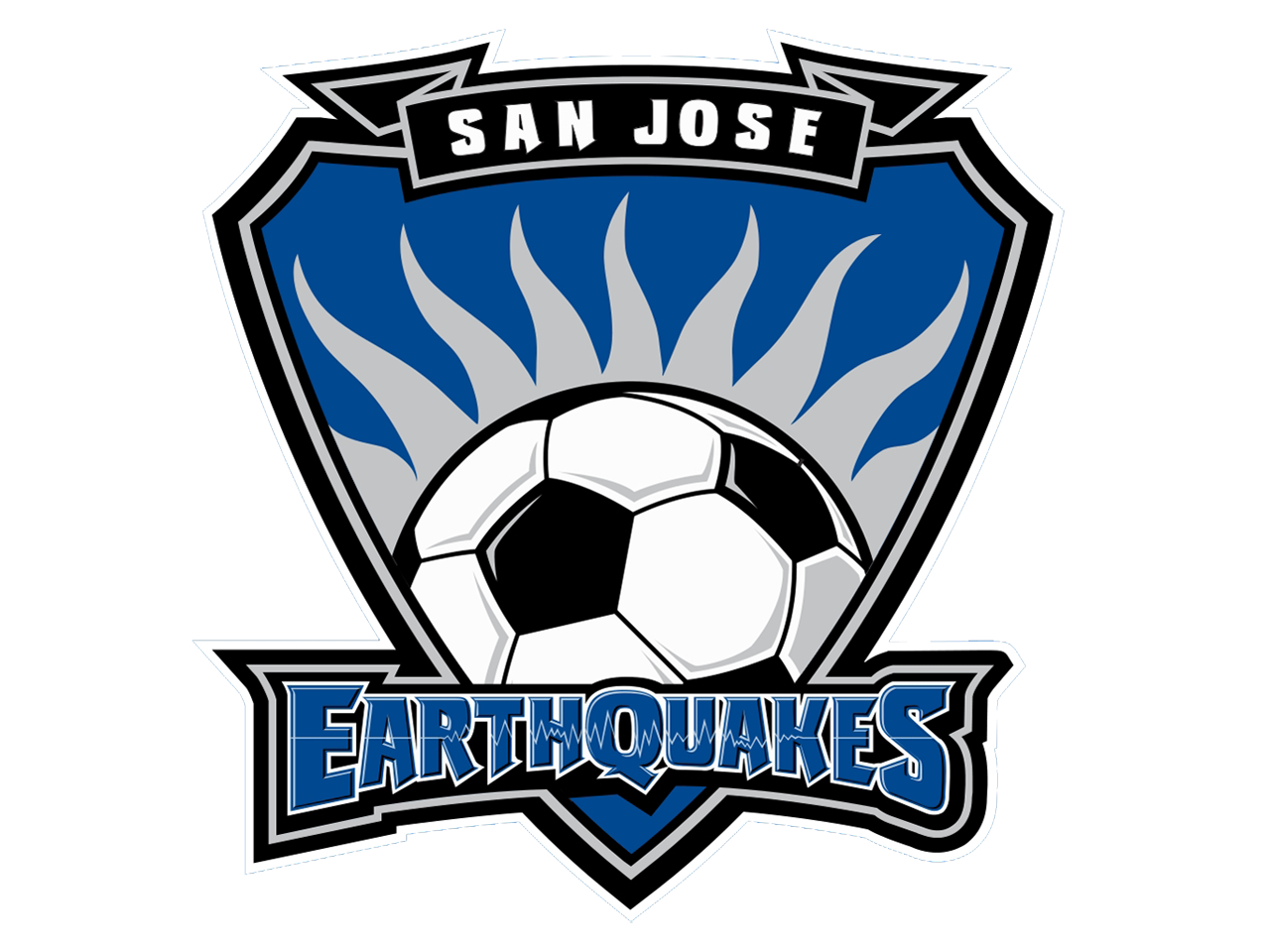 Description: A soccer ball with the words san jose on it and a fireball in the middle of the logo.