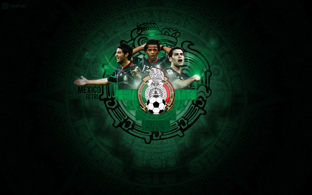 Description: A group of soccer players are in a green background with a soccer ball in the center of the image.