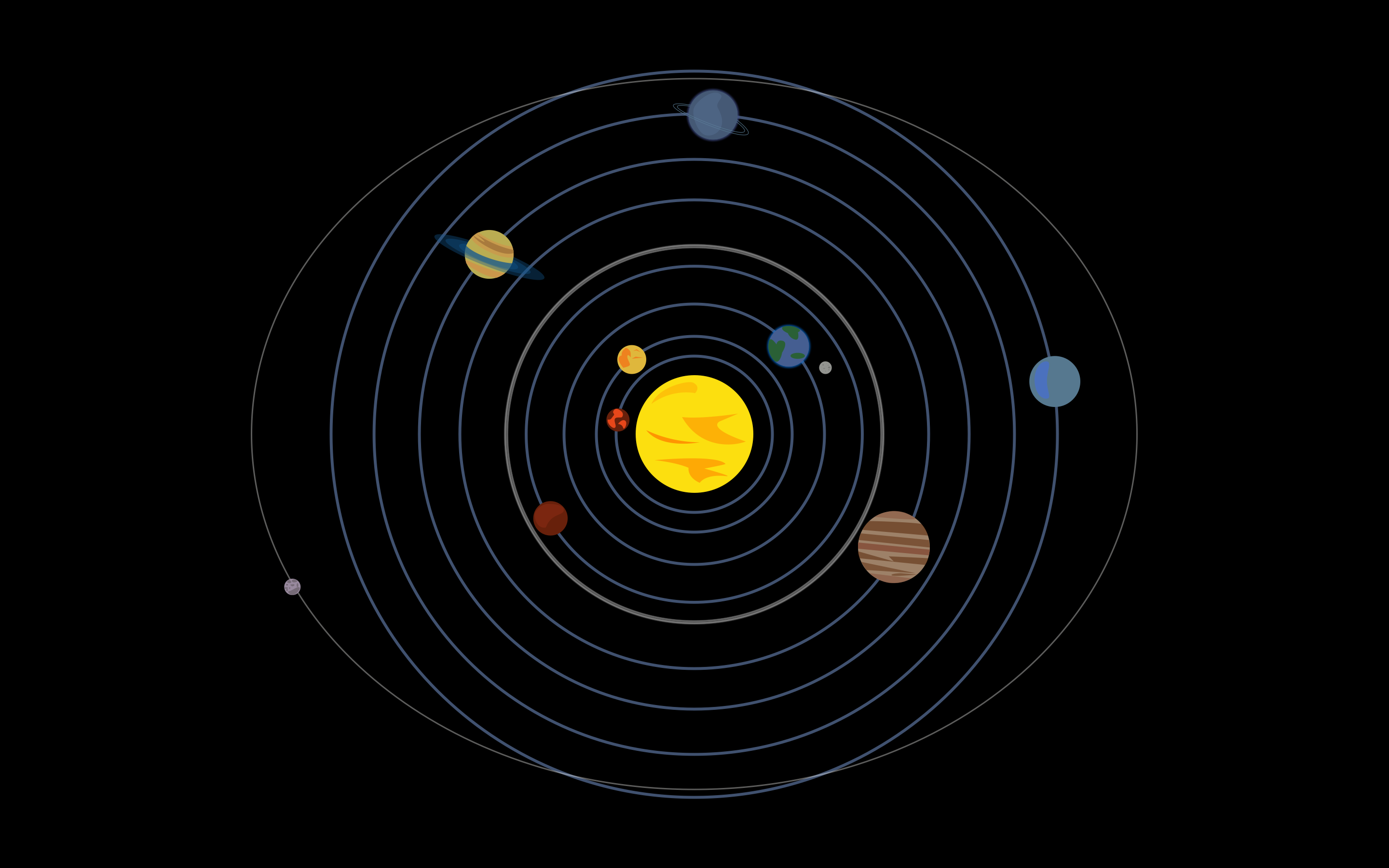 Description: A solar system with eight planets and a star in the center of it.