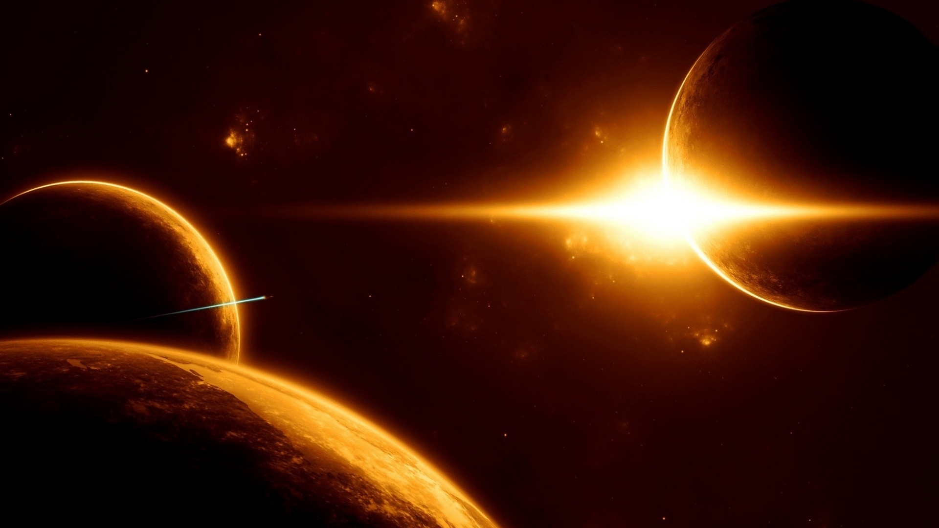 Description: A solar system with two planets and a star in the background.
